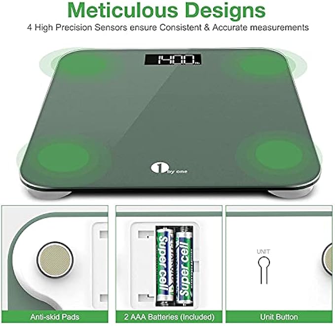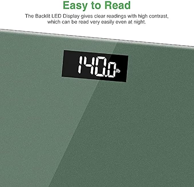 Compact Size and Sleek Design: Midnight Green makes this body weight scale very impress, small and compact size (10.23*10.23*inches), and its low-profile and sleek design fits perfectly into your bathroom or bedroom, allow you put the scale anywhere and save much room