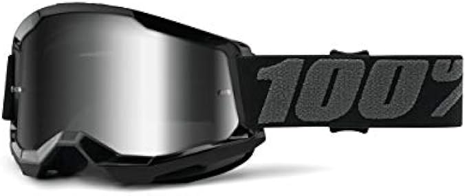 100% Strata 2 Motocross & Mountain Bike Goggles - MX and MTB Racing Protective Eyewear (Black - Mirror Silver Lens)