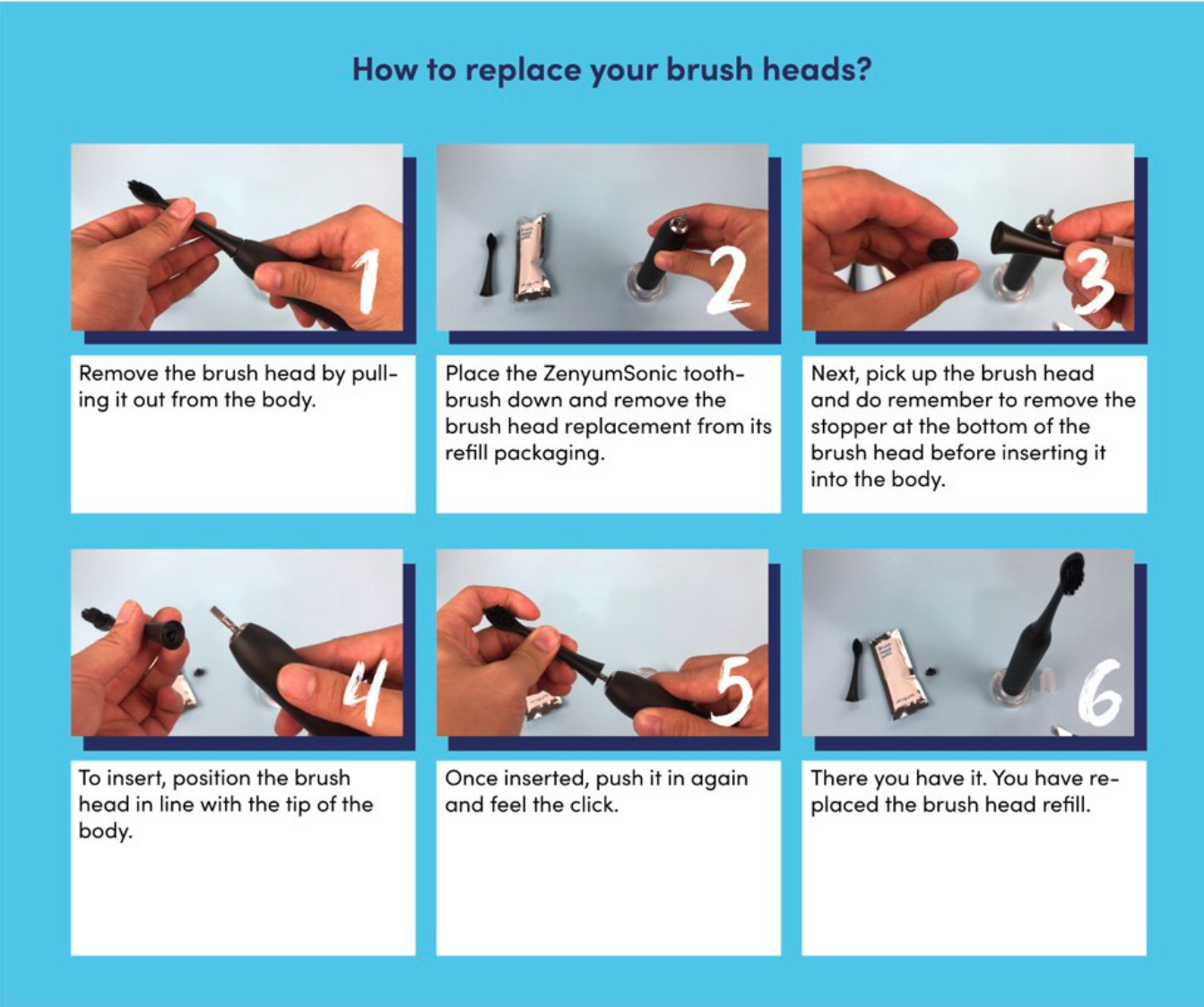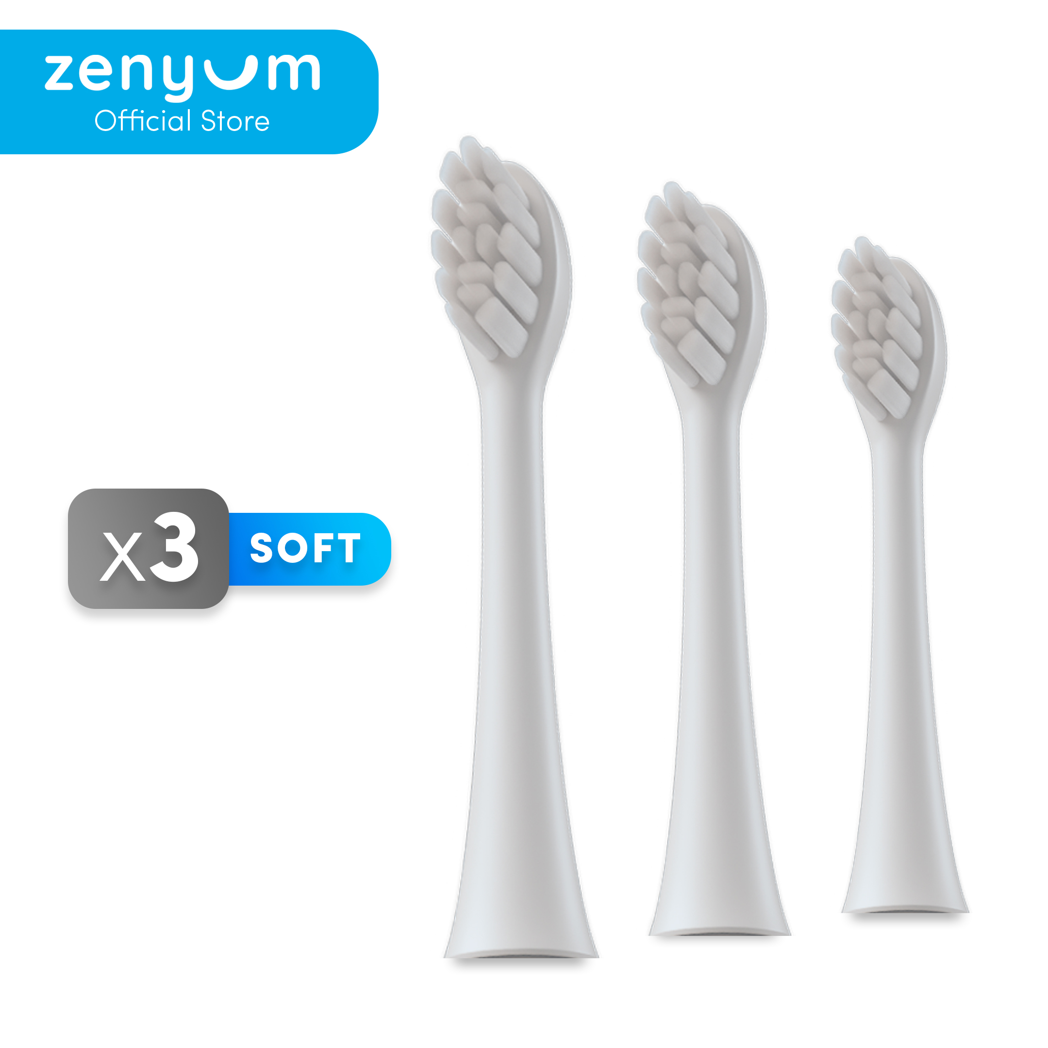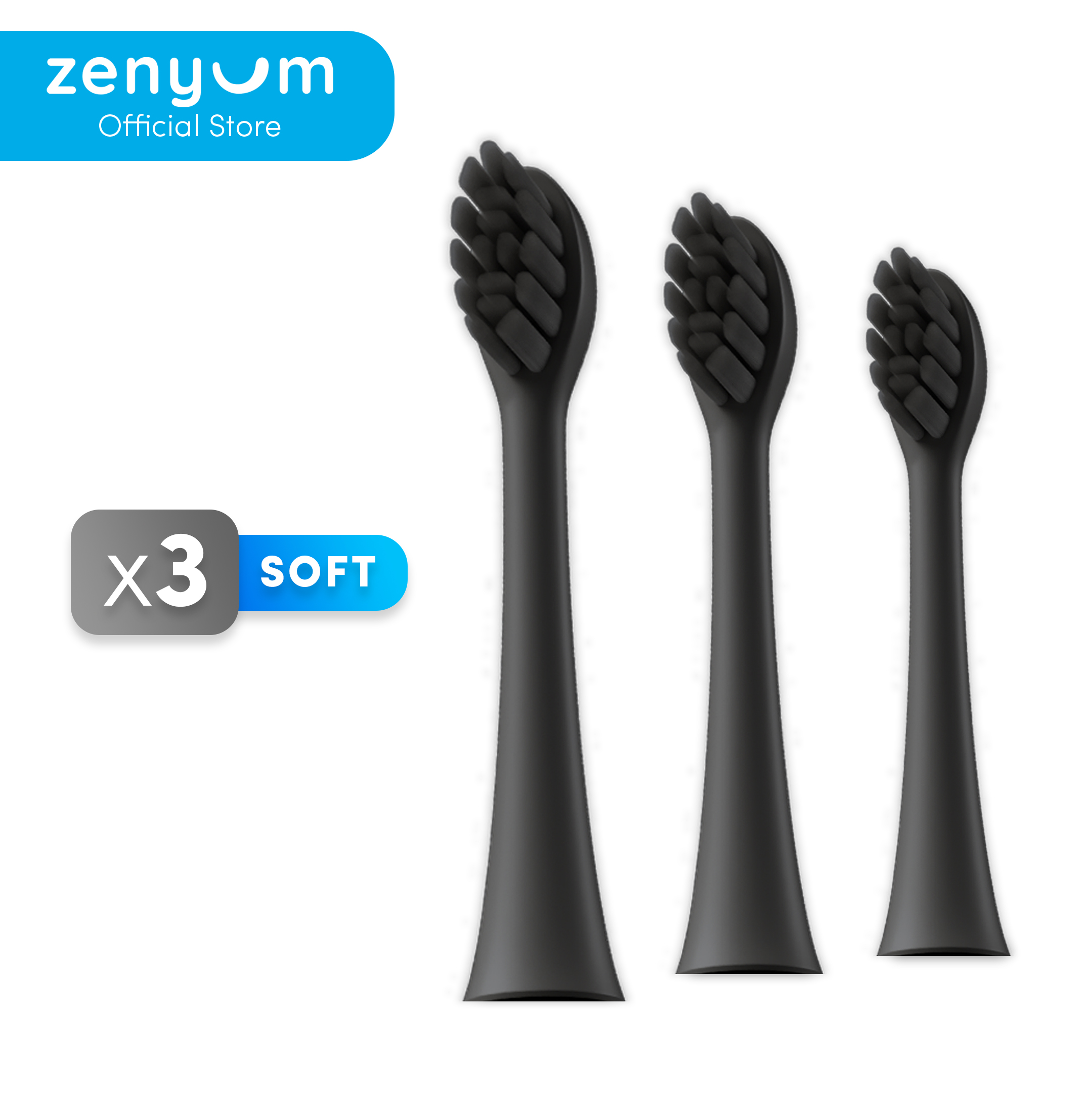 ZenyumSonic 3-Pack Replacement Brush Heads Refills- Matte Black/White/Pink/Green/Blue for Electric Toothbrush (Sonic Vibrations/ 3 Modes: Whitening, Gentle & Deep Cleaning/ Good for Braces & Teeth/ So