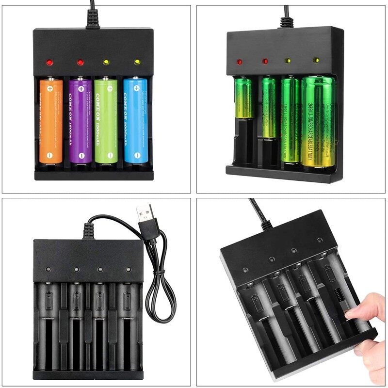 1.Intelligent Charger: USB Smart Battery Charger 4-Bay Has four independent charging channels, it can charge four lithium batteries at the same time. The charging indicator allows you to clearly understand the charging status of the battery. Red light when charging, green light when fully charged.