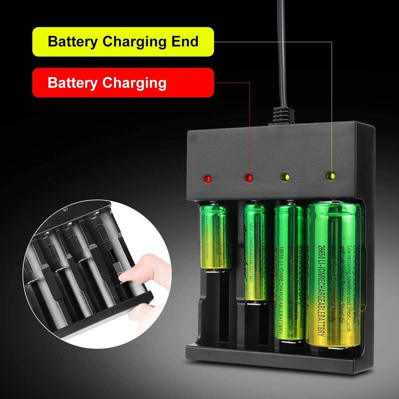 2.Multi-Function: 4 slots can be adjusted according to different battery lengths. This charger is suitable for 26650/18650/18500/16650/16340/14500/10440 lithium-ion rechargeable batteries