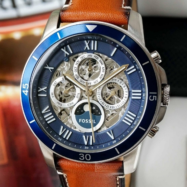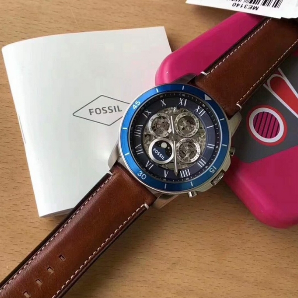 (SG LOCAL) Fossil ME3140 Grant Sport Twist Automatic Skeleton Dial Leather Strap Men Watch