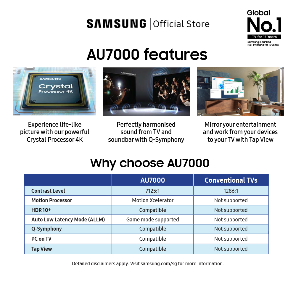[Bulky] Samsung 75" AU7000 UHD 4K Smart TV (2021) 4 Ticks / 36 Months Warranty