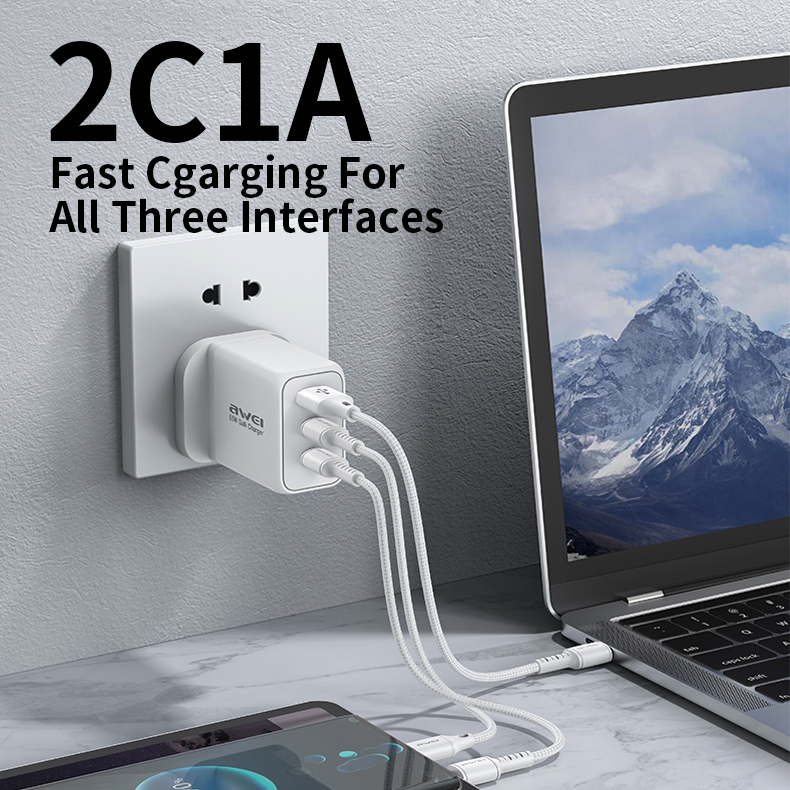 USB-C1+USB -C2+USB -A Output::45w+5v/3a(60W Max)