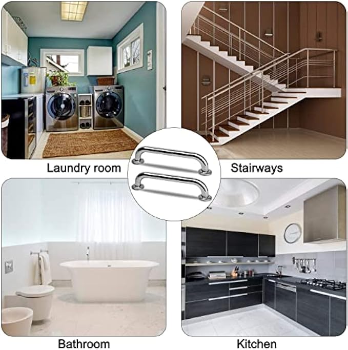 304 Stainless Steel Shower Handle- the material of the shower bar is 304 stainless steel, so there is no doubt about its firmness and safety. Shower handles can support up to 500lbs. 304 stainless steel handrail is durable and corrosion resistance. Please feel free to use our premium bathroom grab bars to make each bathroom safer for your family. Multipurpose Sturdy Design - the shower handles can not only be used as bathtubs and showers to protect your safety, but also put your towels, clothes, etc. Grab bars for bathroom- grab bars can provide good support for families in bathtubs, showers, bathrooms and other indoor locations to minimize the risk of slipping and falling. Grab bars for bathtubs and showers. Easy to Install: each grab bars includes 6 stainless steel screws, 2.6 inch flanges, and a 3-hole flange design for stud installation. The shower rails has a total length of 12.79 inches and a diameter of 0.98 inches. Fixed installation in the required position, permanently ensure your safety and never came off. Work for All- This safety shower bar is suitable for everyone. Shower handles for elderly, shower grab bars for seniors, kids, injured, normal person, but also as handicap grab bars. It provides a guarantee for the safety of you and your family. Shower grab bar. A Great Bathroom Gift - A perfect choice as a gift for Mom/Grandma/Wife/Daughter/Aunt/Grandma, or Mother's Day, Father's Day,Thanksgiving Day,Valentine's Day,Birthday and Christmas.With our easy to use Heavy Duty Shower Handle,you can use as decoration your bathroom, bathtub, bedroom or any room of your house! Great bathroom safety, aids & accessories, shower rails for seniors, shower hand rail, balance assist shower accessories, helping handle for pregnant women, elder, stair railing. 100% Customer Satisfaction Guarantee: We are striving to provide a high quality product and excellent service. Please feel free to contact us if you have any problems with this handicap grab bars for bathroom.