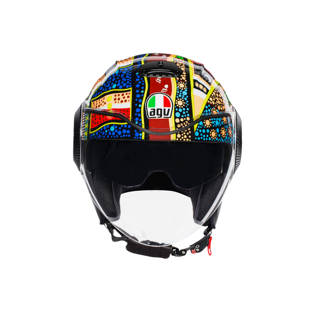 Orbyt is the ultimate AGV jet helmet, designed for maximum comfort, freedom and protection in the urban environment. Ultra comfortable interiors make every ride easy and enjoyable. The central air intake is strategically positioned in such a way that it isn’t affected by the sun visor position. Its smooth mechanism allows a perfect activation also wearing gloves. AGV safety standards are ensured by multi densities EPS construction, that guarantees superior impact performances. Riding is always fun.