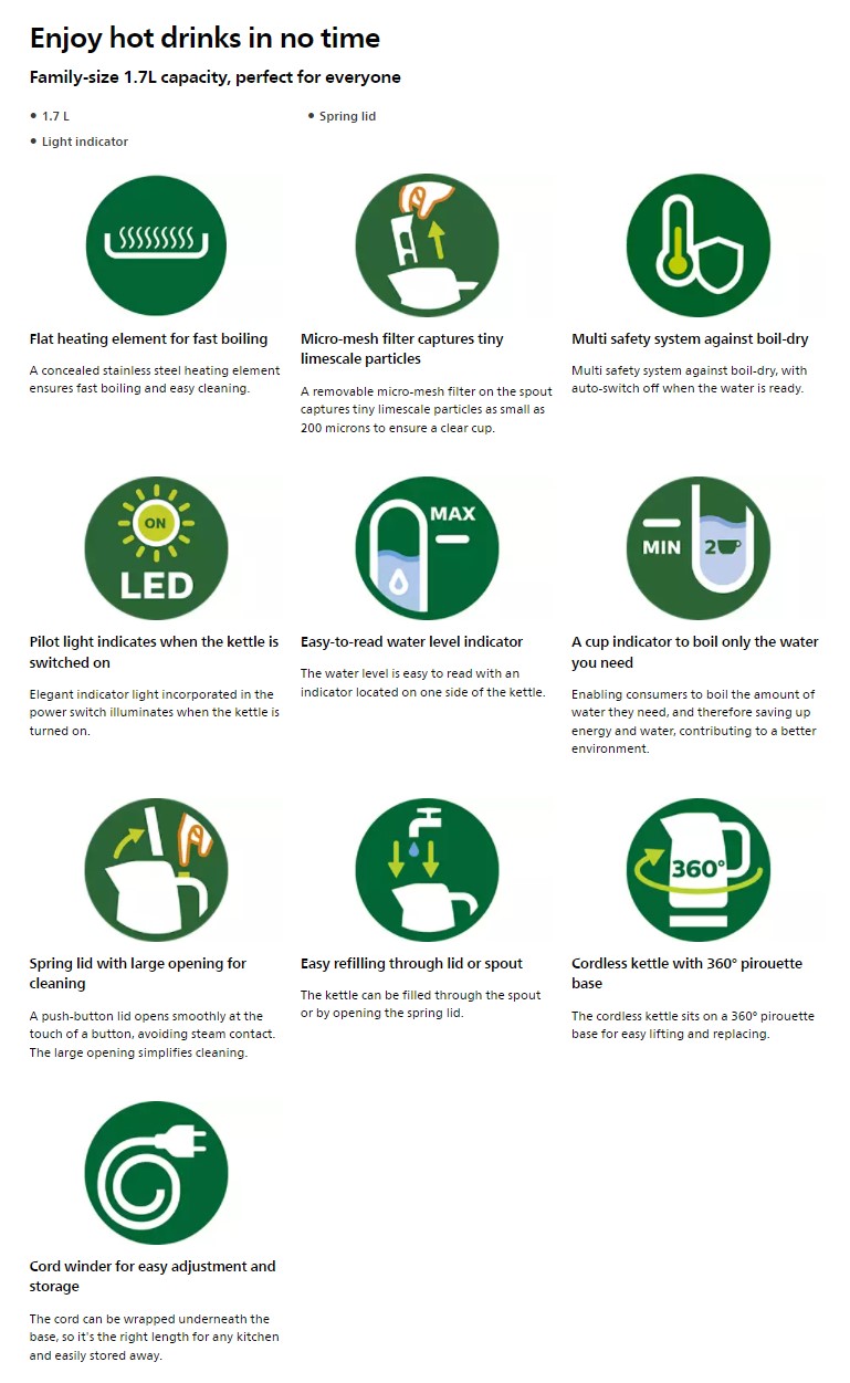 Philips Series 3000 1.7L Kettle with Light Indicator HD9318/21