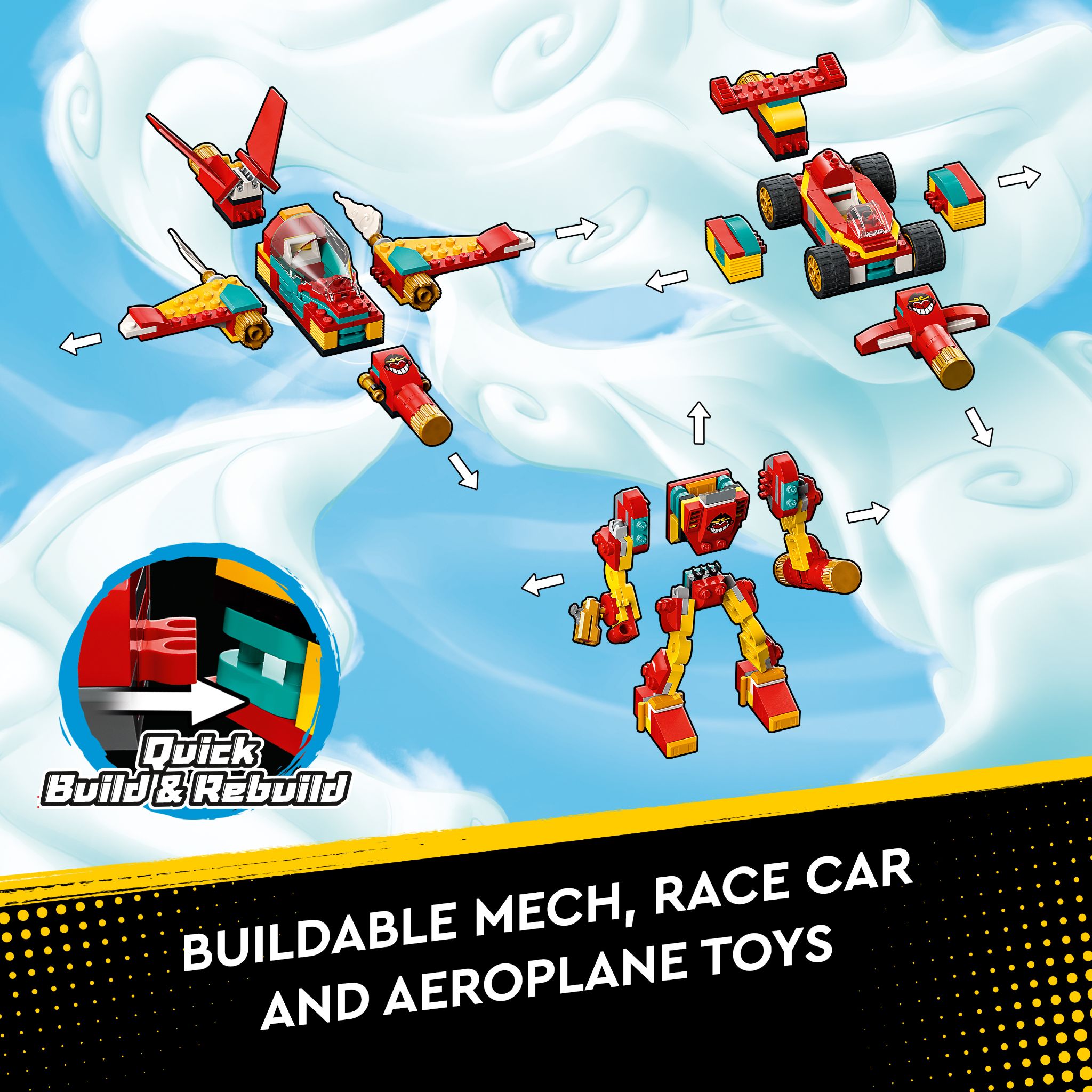 Build creative confidence – Youngsters can build a mech, race car and airplane and their own versions of Monkie Kid’s Staff Creations with this fun modular toy playset (80030)