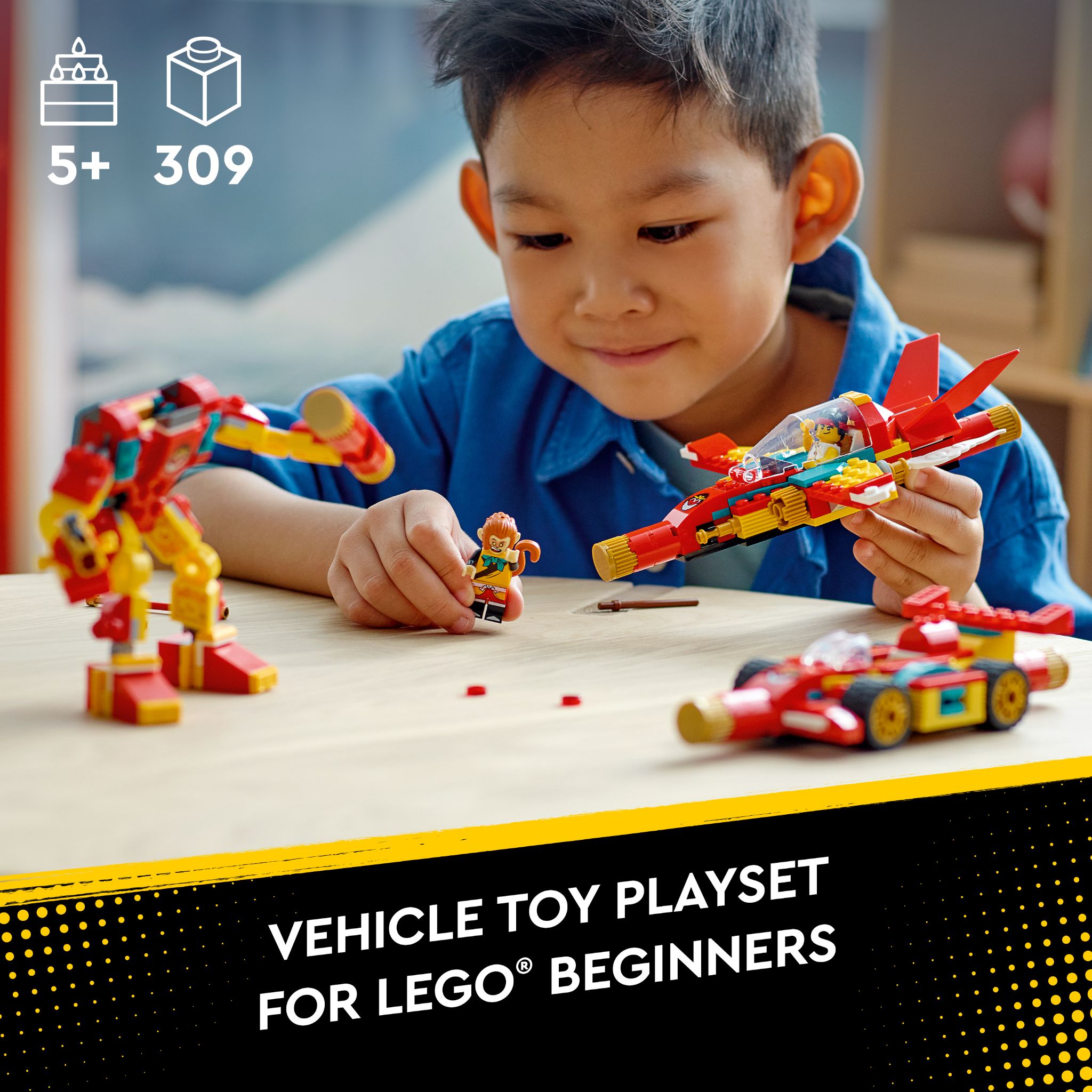 Introduce children to legendary Monkey King stories and LEGO® building and play with Monkie Kid’s Staff Creations (80030). This vehicle toy playset features a buildable mech, race car and airplane, each with easy-to-attach parts so kids can mix the models together to make their own unique creations. With a new-for-January-2022 Monkie Kid minifigure in a training outfit and the Monkey King with The Golden Staff to encourage storytelling and role play, this set makes a top gift or reward for kids aged 5 and up.