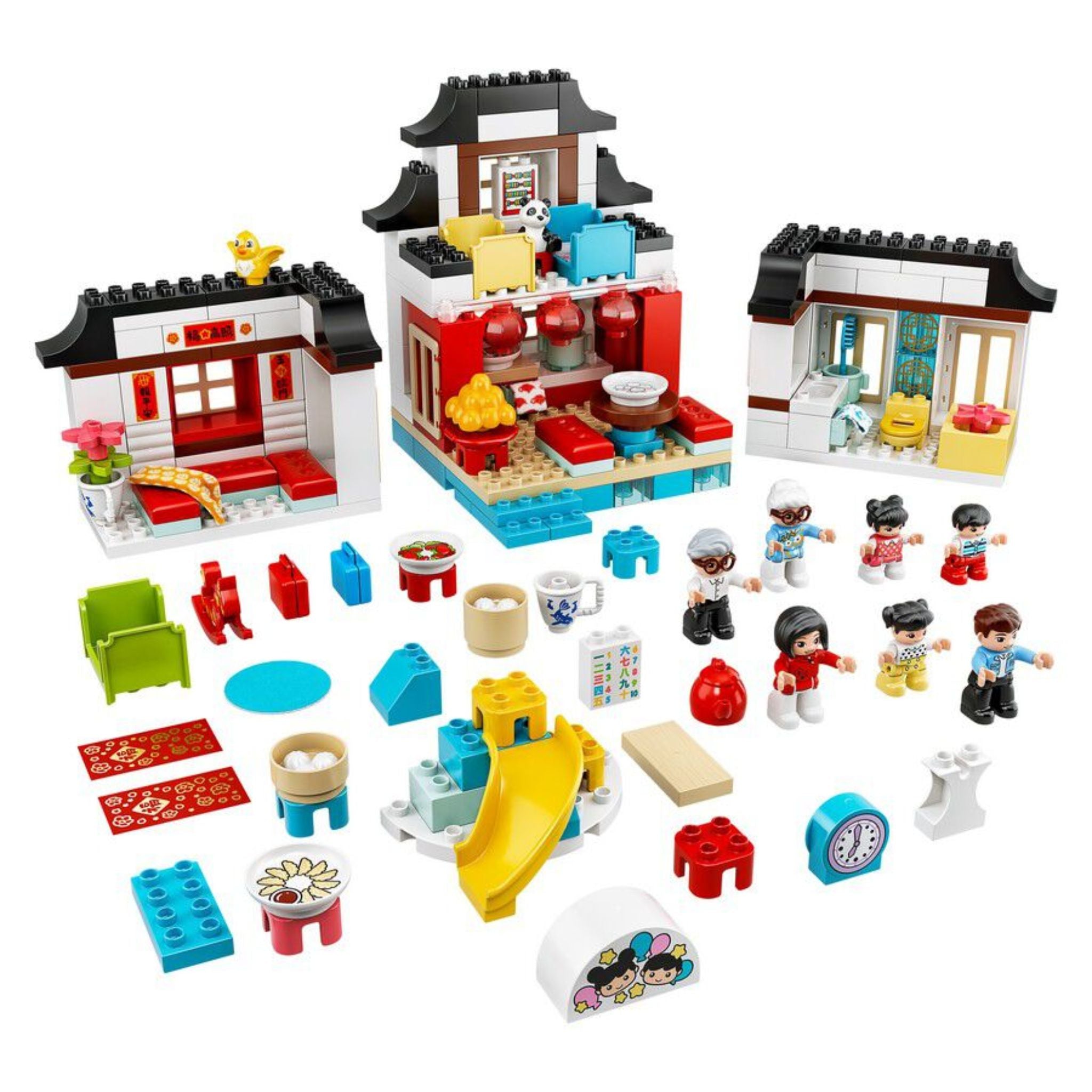 * LEGO® DUPLO® Town Happy Childhood Moments (10943) is a premium, 2-in-1 playset which teaches preschoolers about 2 big family events: Chinese New Year celebrations and the first day at kindergarten.
