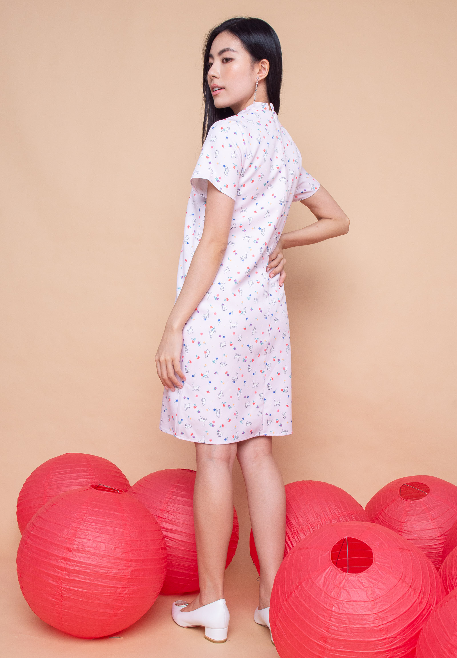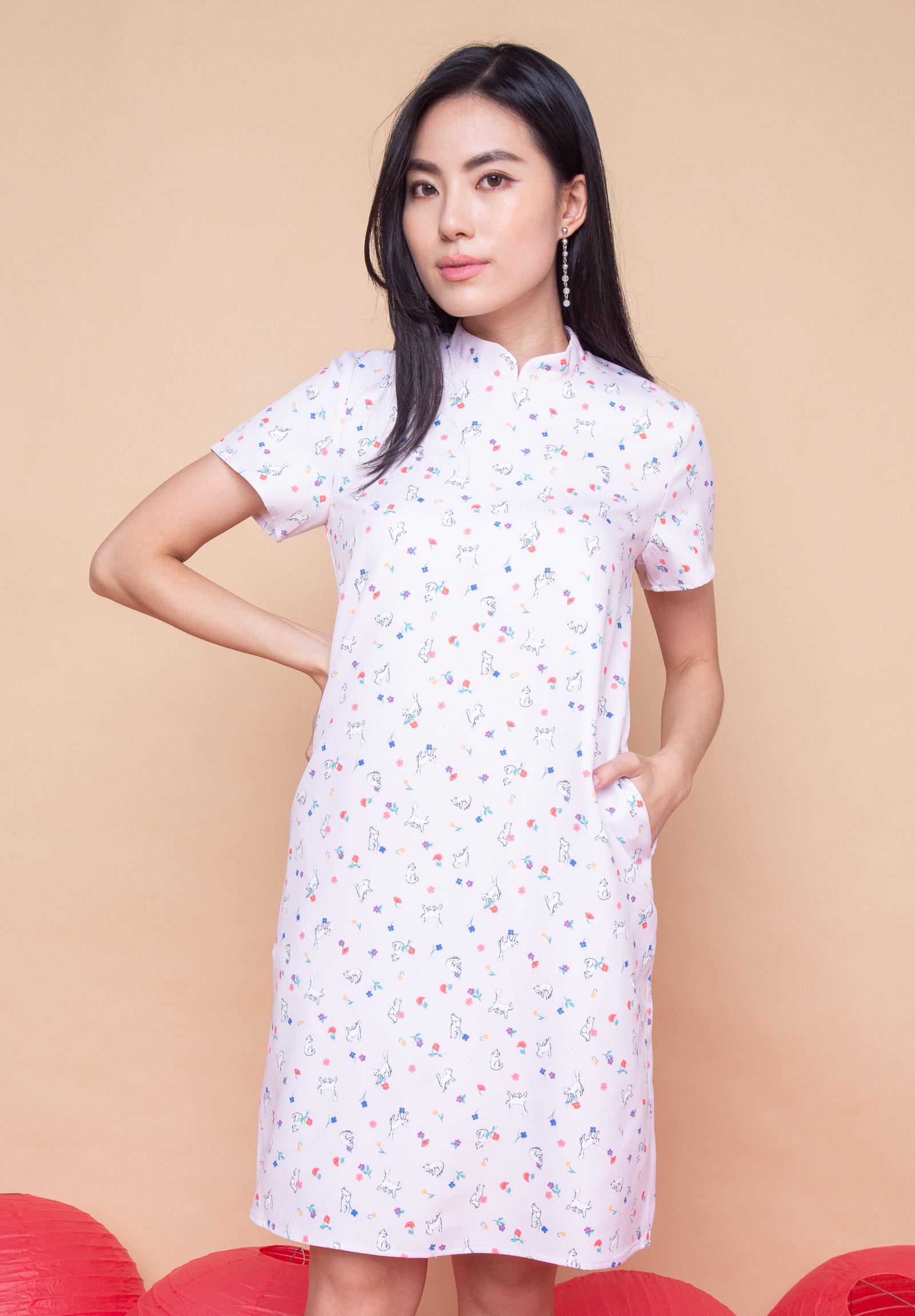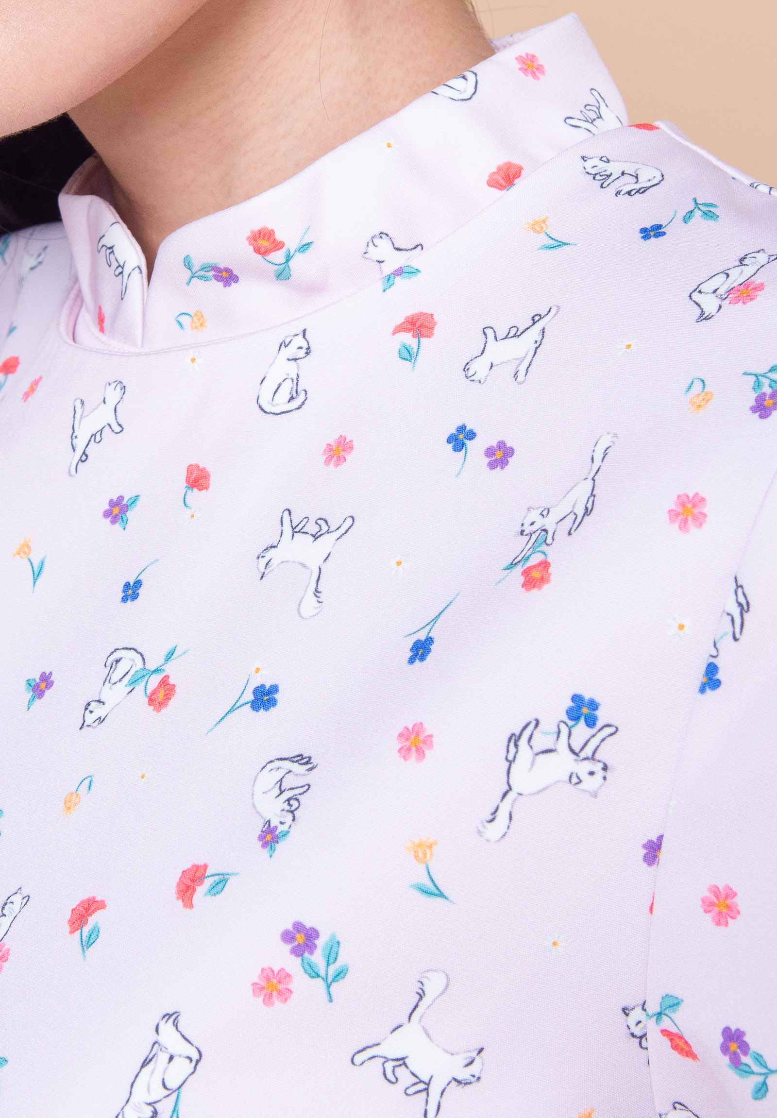 LZZIE FLORAL CATS DETACHABLE COLLAR CHEONGSAM DRESS - 100% AUTHENTIC