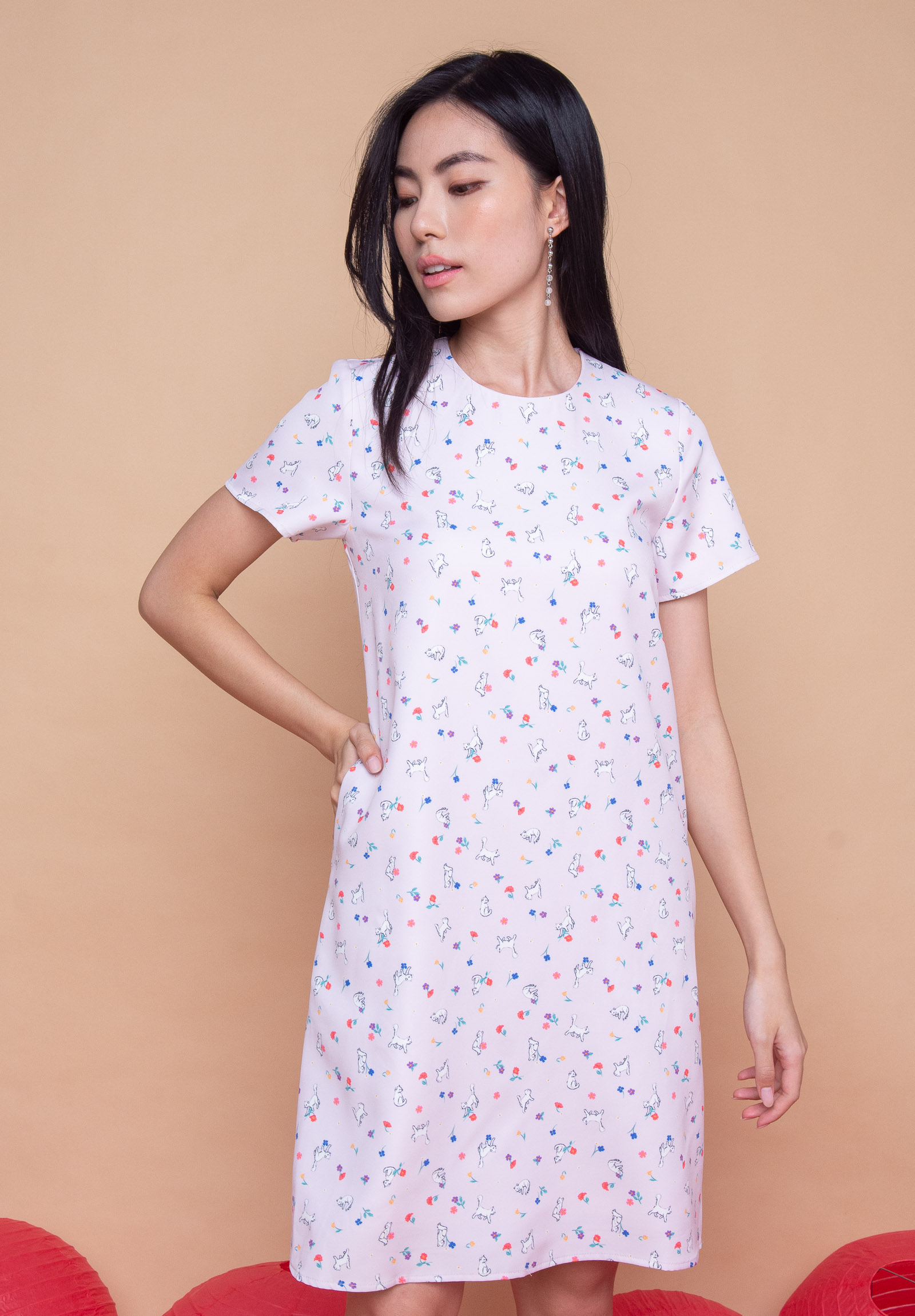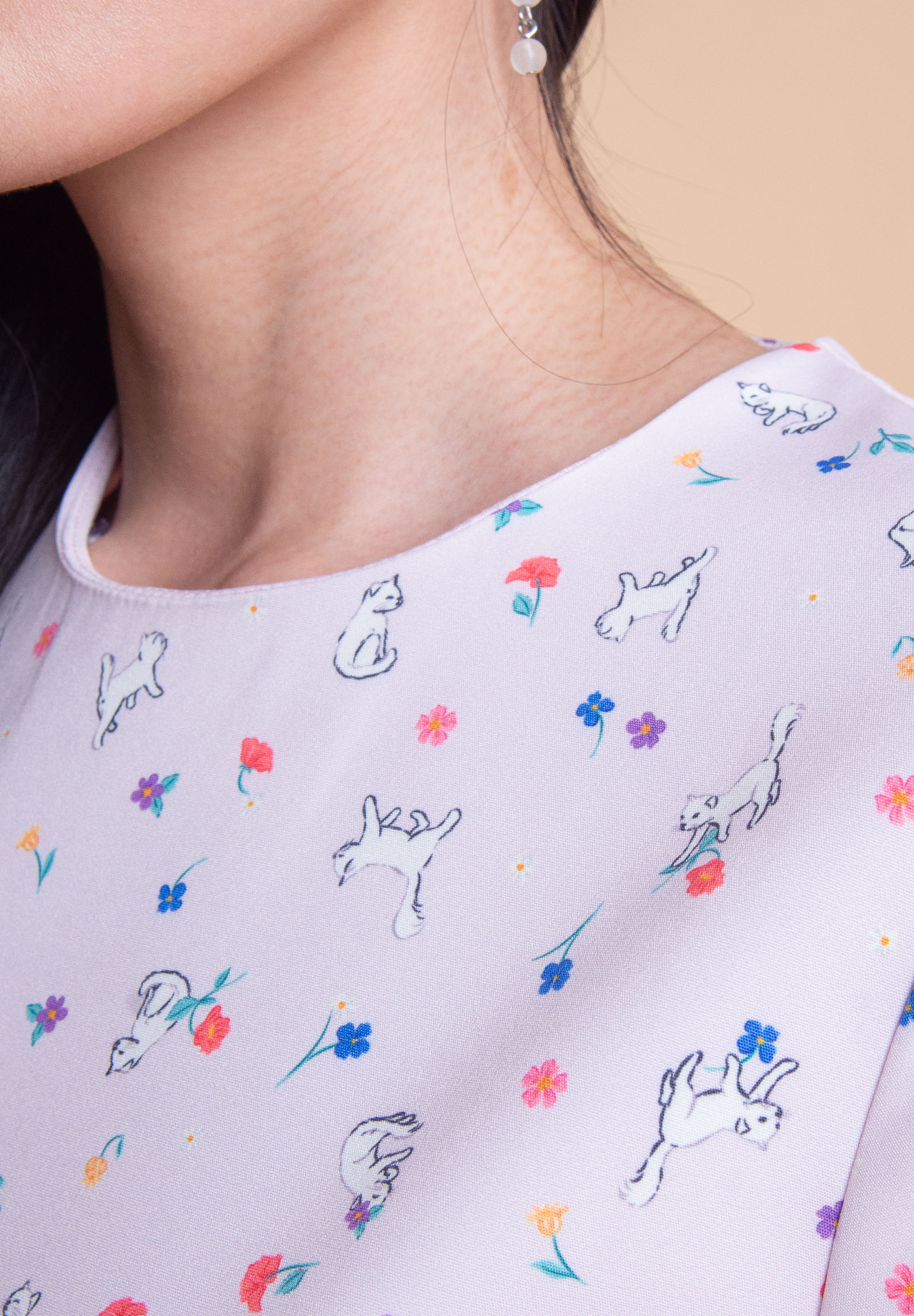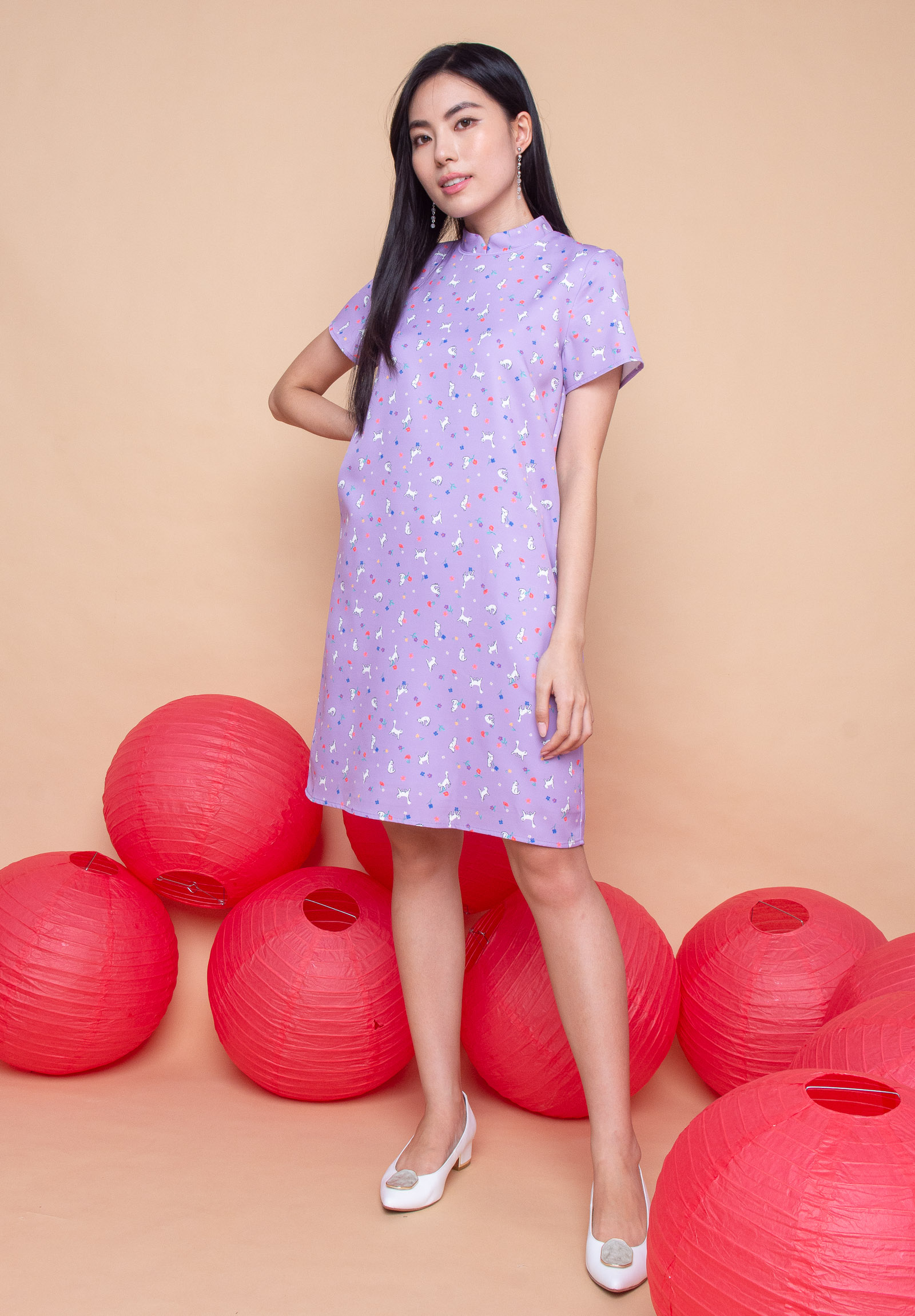 LZZIE FLORAL CATS DETACHABLE COLLAR CHEONGSAM DRESS - 100% AUTHENTIC