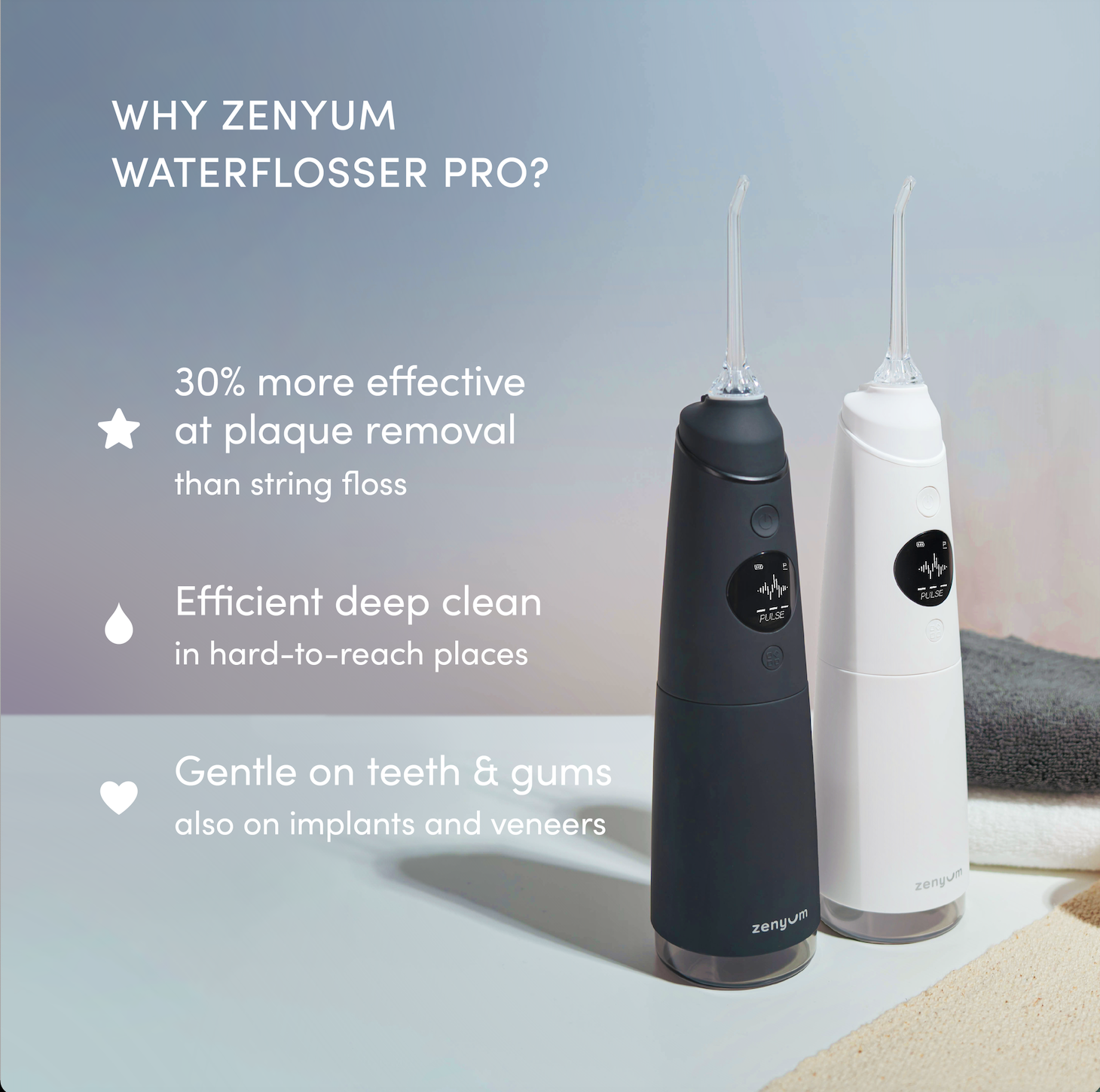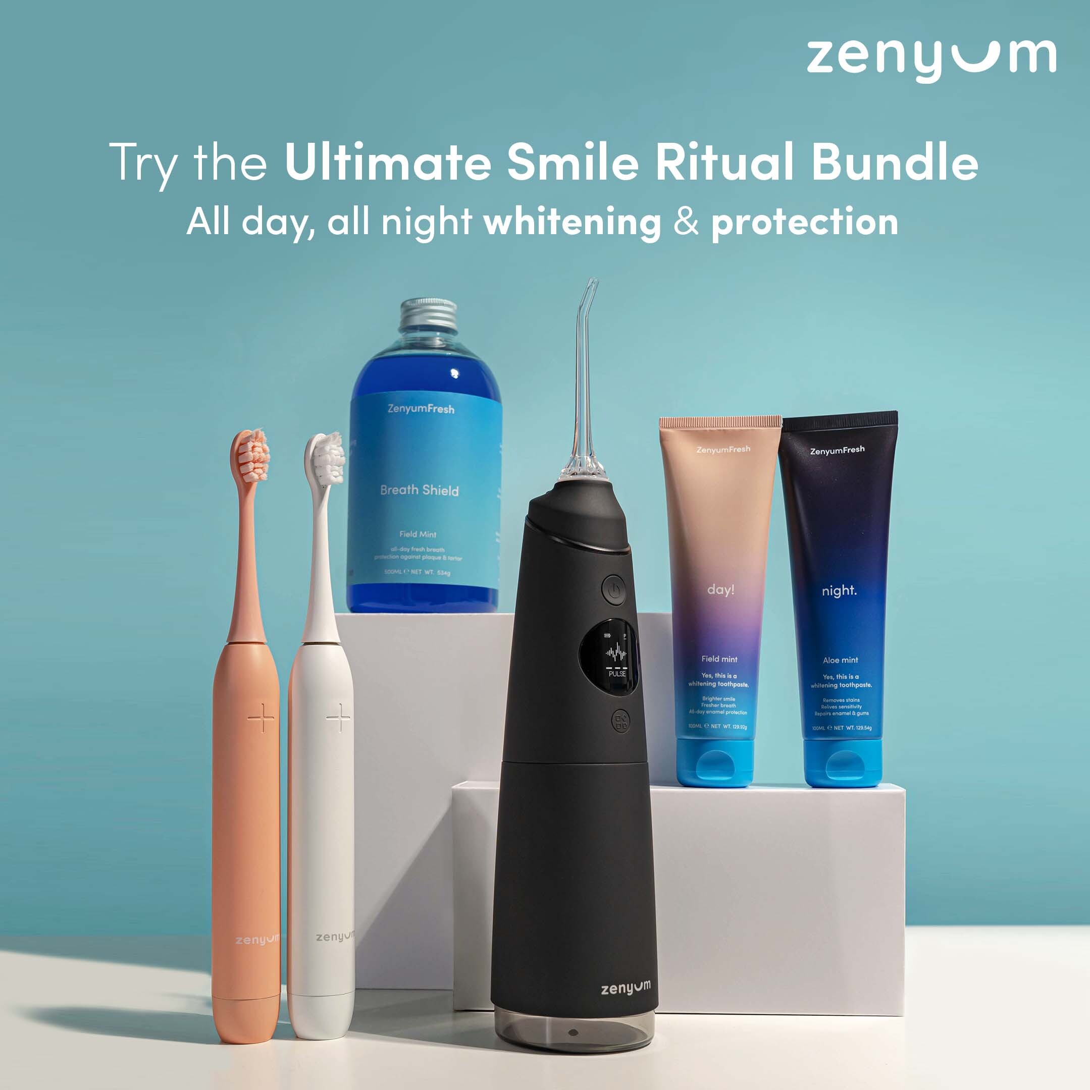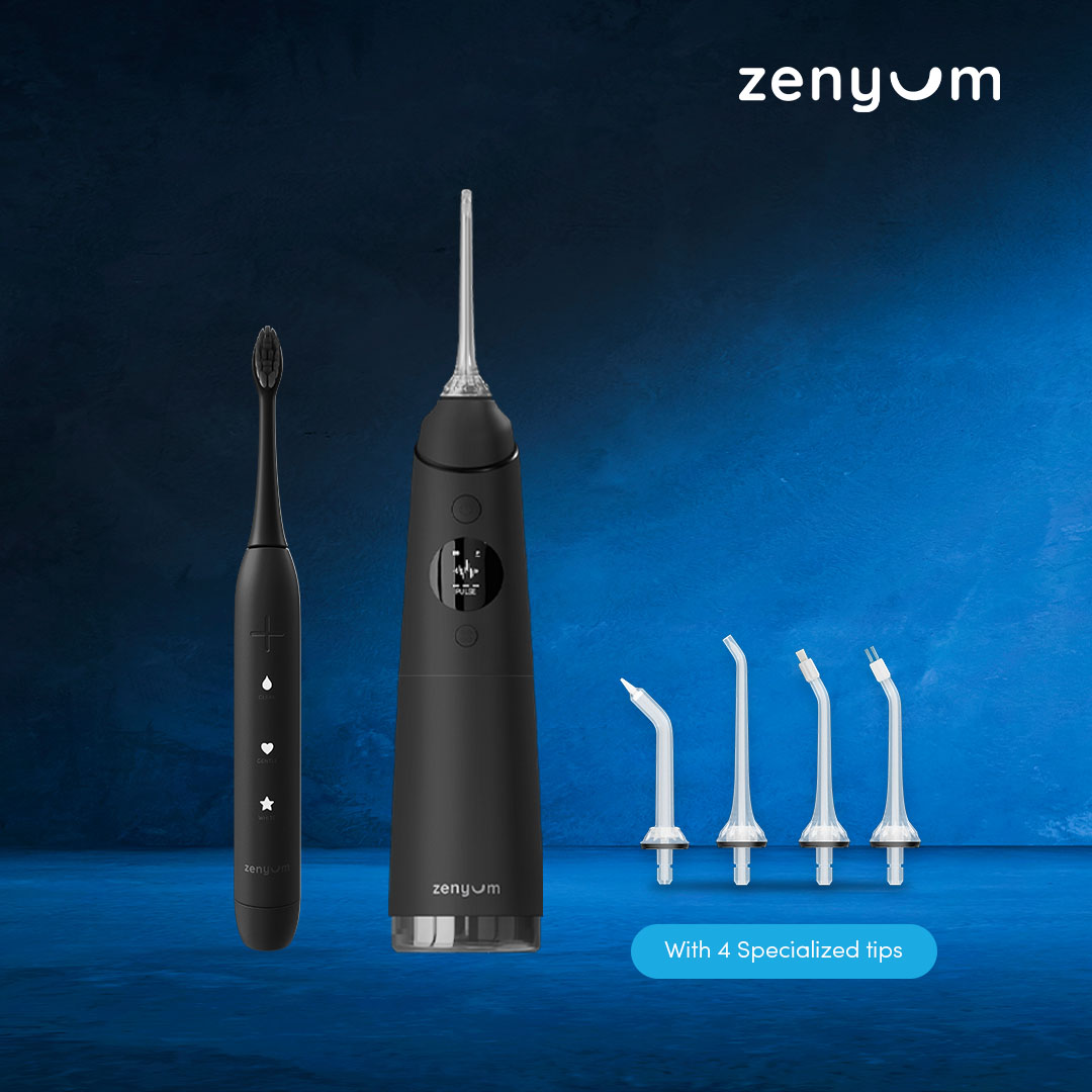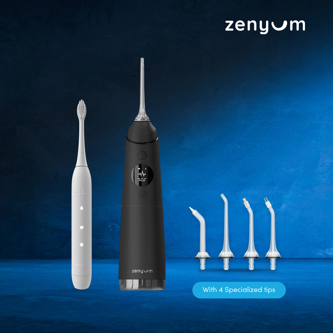 Zenyum Sonic Electric Toothbrush with Zenyum Water Flosser Pro (Black/White)