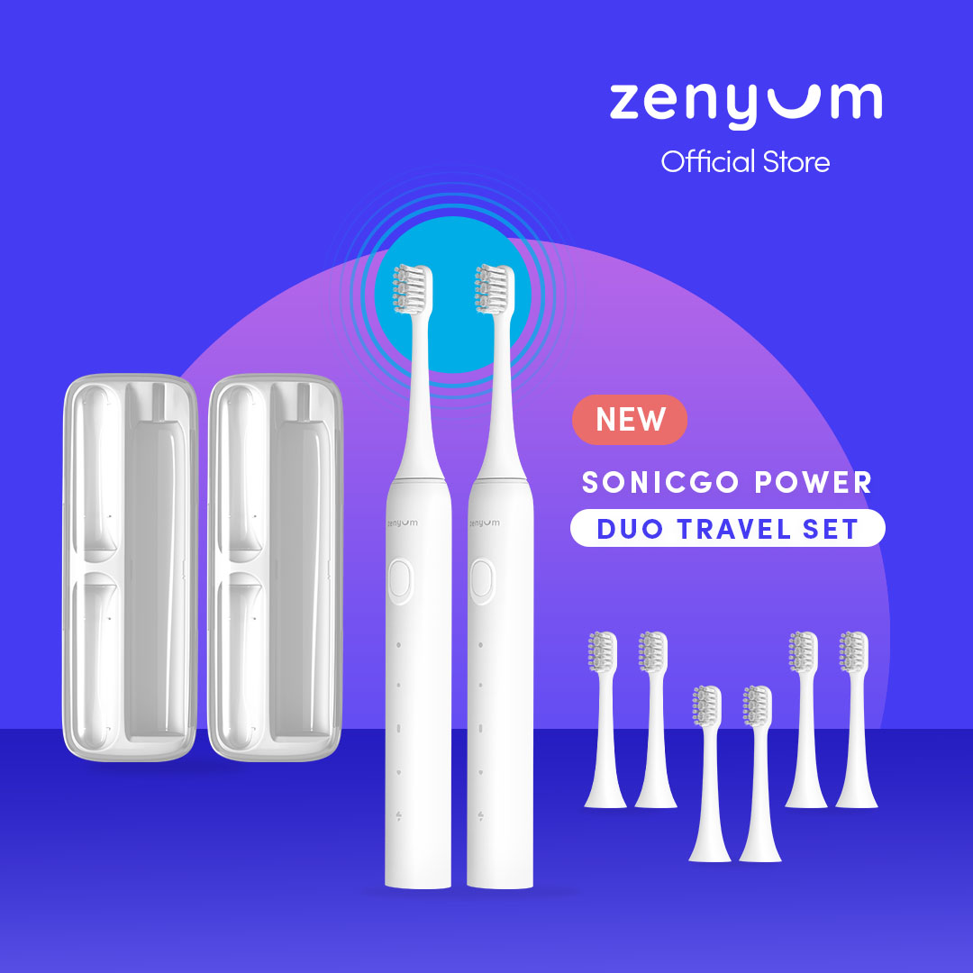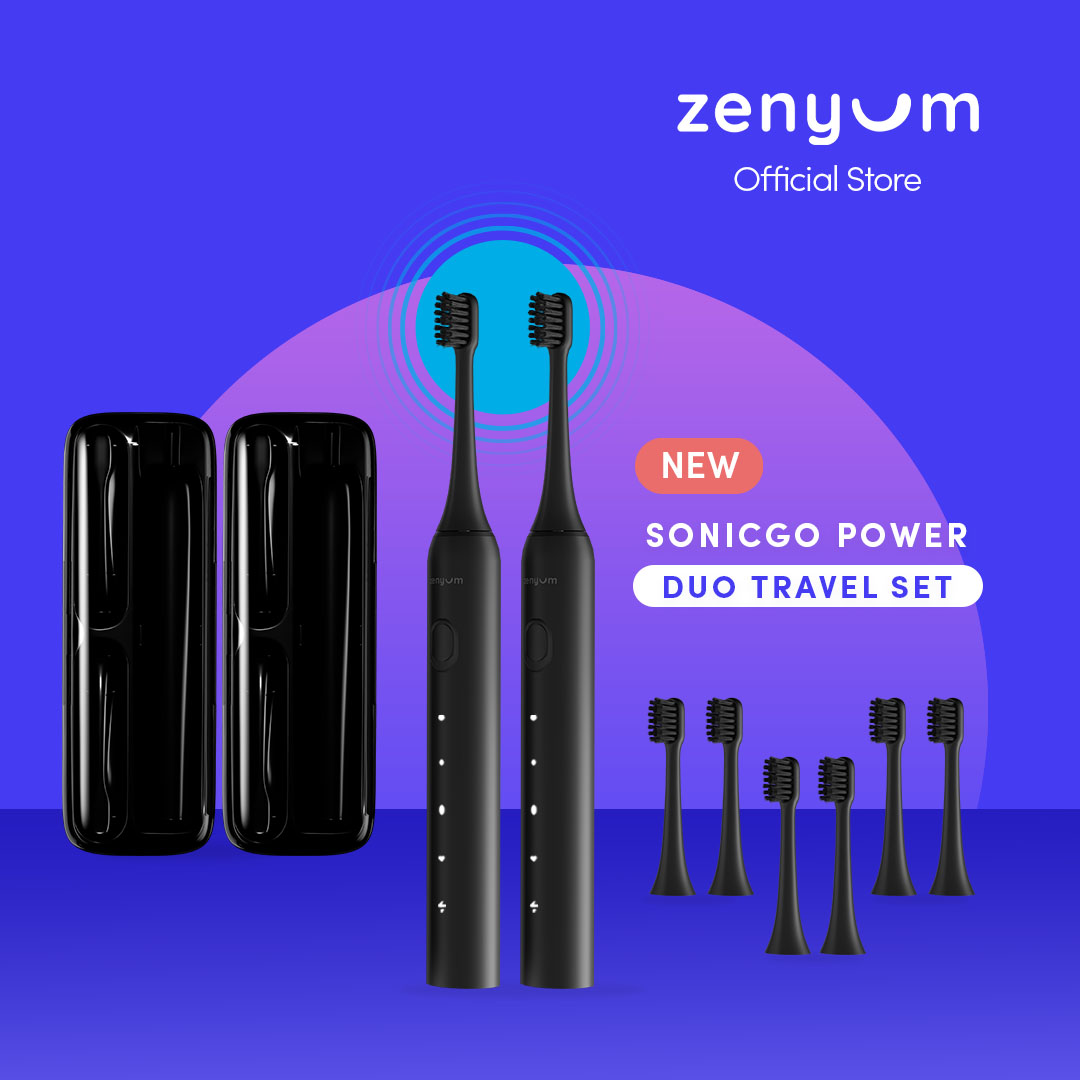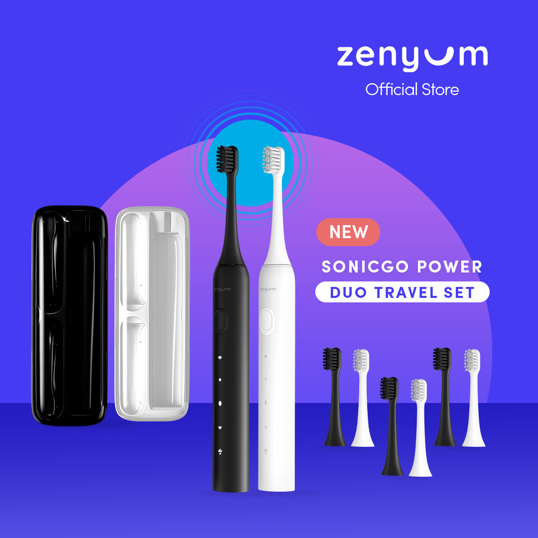 Zenyum Sonic Go Power Duo Travel Set with Brush Head Refills (Black/White) (Portable, Lightweight, IPX7 waterproof)