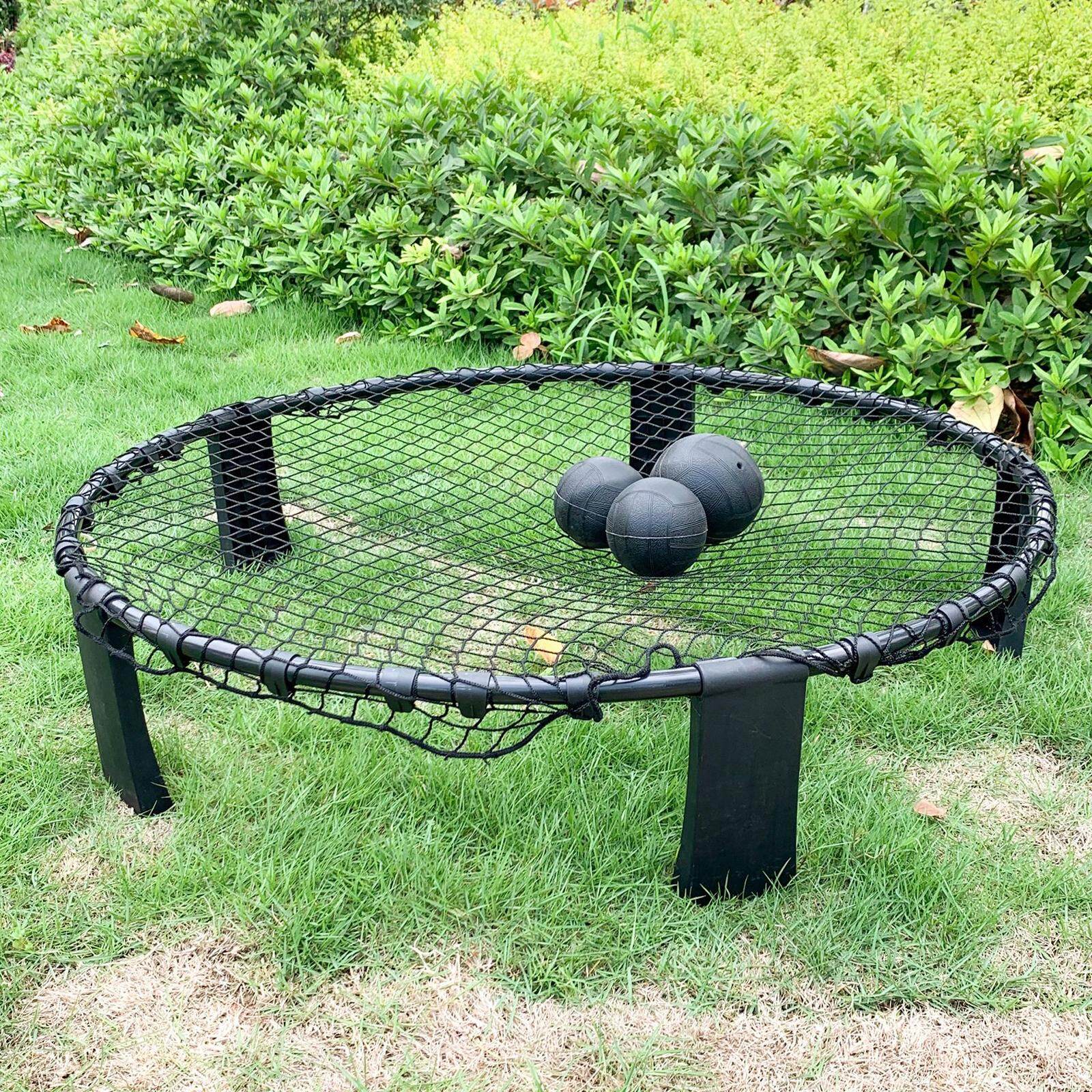 - Spike Game Set: Includes 1 x round net, 3x balls, 1x carrying case, and 1x inflating pump. An exciting outdoor lawn game for kids, teens, and adults!