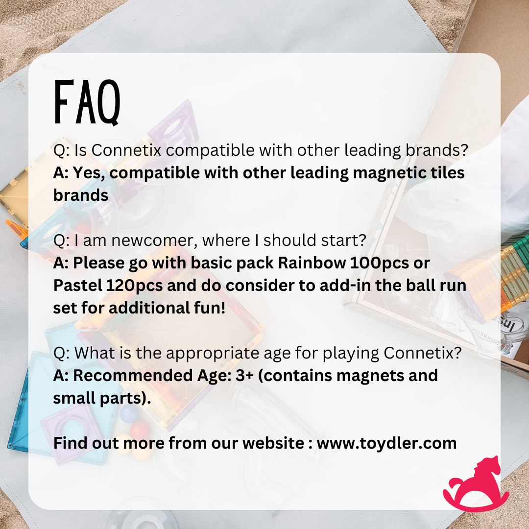 As an open-ended quality toy, Connetix will grow WITH your child as they learn and their play becomes more complex. Extend the possibilities for magnetic tile learning and play by complementing your 40 piece Pastel Geometry Pack with our 120 piece Pastel Creative Pack or 202 piece Pastel MEGA Pack to take your magnetic tile play fun to the next level.