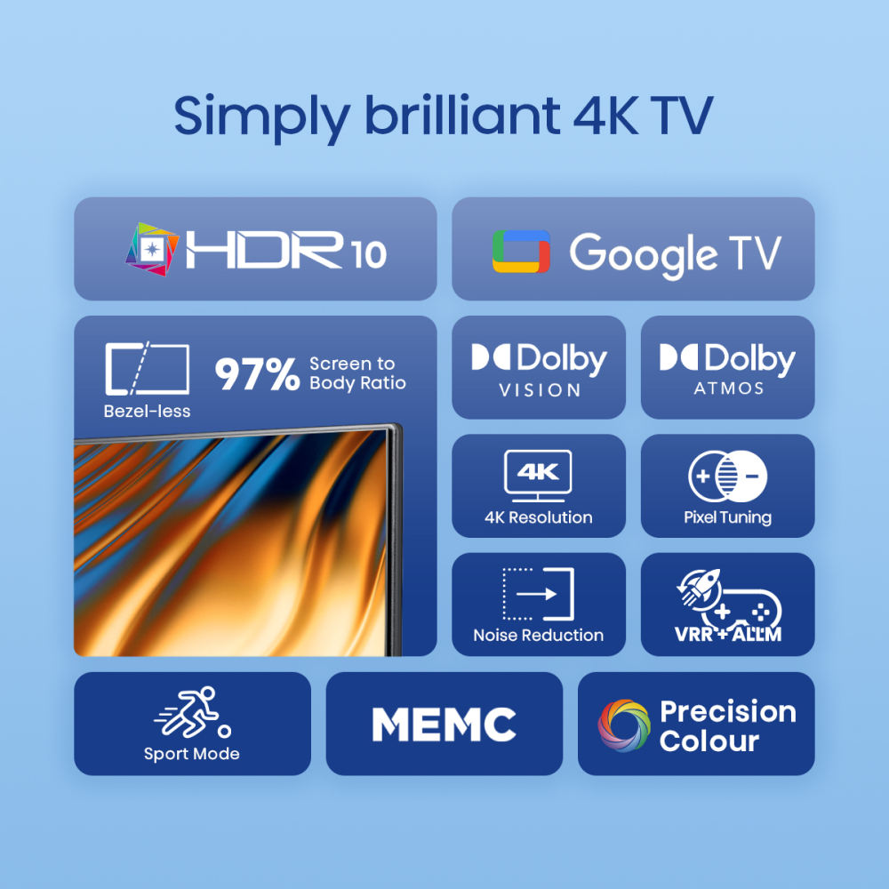 ?【Google TV】With Youtube, Netflix, Disney+ and 5000 more apps available in the Google Play store ?【Google Assistant】Voice control the TV, a hands-free experience ?【Chromecast built in】Cast your phone or other smart devices' screen to TV ?【Airplay & Homekit】Wireless stream content or control from your Apple device to the TV ?【Dolby Vision & Atmos】Experience the most realistic holographic "surround" impact ?【Filmmaker mode】One-click reset to the original picture and sound. ?【Pixel Tunning】Better contrast for the enhanced viewing experience ?【4K Upscaling】4K AI Upscale: Best resolution arranged by intelligent software ?【Game Mode】Auto Low Latency Mode + VRR, experience no lag in FPS games ?【Bluetooth remote】Longer distance 360° control compare to the traditional infrared controller ?【Wireless】Supports 2.4G and 5G dual wifi and Bluetooth 5.1 ?【Built-in ports】3 x HDMI (1 x eARC), 2 x USB2.0, Ethernet(Lan)