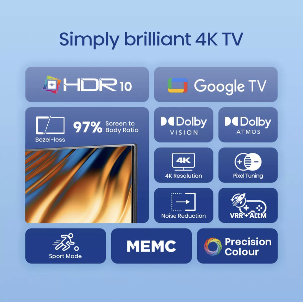 ?【Google TV】With Youtube, Netflix, Disney+ and 5000 more apps available in the Google Play store ?【Google Assistant】Voice control the TV, a hands-free experience ?【Chromecast built in】Cast your phone or other smart devices' screen to TV ?【Airplay & Homekit】Wireless stream content or control from your Apple device to the TV ?【Dolby Vision & Atmos】Experience the most realistic holographic "surround" impact