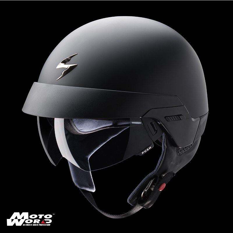 - The EXO-100 is an all-new open-face helmetdesign with removable ear skirt and external visor. InternalSpeedView™ retractable shield (Patent Pending) and externalremovable visor are included with every EXO-100.