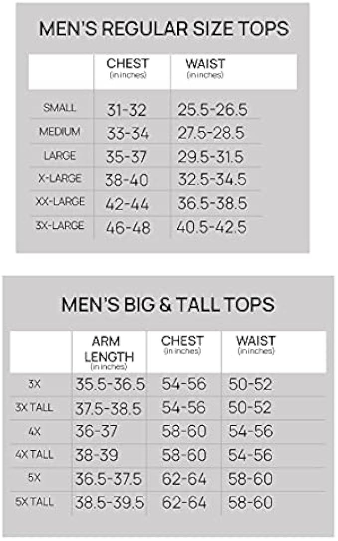 Available In Both Regular & Big and Tall Sizing (Sizes Small-5X Tall)