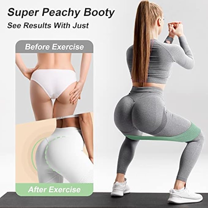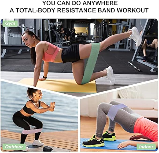3 COLORS WITH SUITABLE LENGTH: 3 different soft colors of 3 different strength levels in this booty band set - pink (20-35lbs), purple (30-45lbs) and green (40-55lbs), you can quickly definitely distinguish them according to colors. The length of each strap is 14.5 "L x 3.15" W, which has been tested by multiple people to be suitable for most body types. ULTRA DURABLE QUALITY: Unlike latex bands, this resistance bands are made of super quality elastic fabric. The fine textile makes the whole band very durable and firm, and will not break like latex do. The elasticity also becomes very long-lasting with this material, and still remains unchanged after a long time of use. COMFORTABLE, NON-SLIP, NO ROLLING: The resistance band is very comfortable to use, flat and not tight, and the appropriate width prevents sharp pressure on the muscles. The inner anti-slip design keeps it in place during your movement without sliding or rolling off. Enhanced joint also helps to ensure its sturdiness and durability. FULL BODY WORKOUTS: 3 strength levels provides 3 different ranges of resistance that response to different exercise needs for whole body. They are excellent for making any bodyweight exercise a little bit more challenging to burn fat or strengthen. You can use them to train hips, hamstrings, glutes, quads, lats, legs, calves, hip flexors, abs, biceps, rear deltoids, etc. And you they are also perfect for the warm ups before exercise and stretching after exercise. EXERCISE IN EVERYWHERE: With these bands you can exercise anywhere you want, at home, yard, park, gym or even office, these are convenient to carry with and use. There is no requirement for any site, time and equipment, and you can effectively pick every fragmented time to exercise alone or with mates. If you want to carry them all, the set also comes with a bag that simply put them in and carry to the gym.
