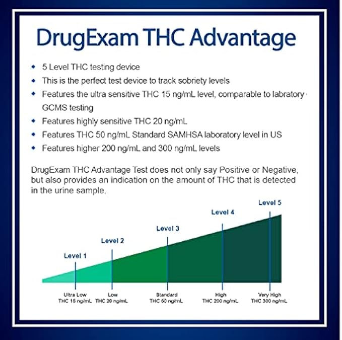 3 Pack - DrugExam THC Advantage Made in USA Multi Level Marijuana Home Urine Test Kit. Highly Sensitive THC 5 Level Drug Test Kit. Detects at 15 ng/mL, 20 ng/mL, 50 ng/mL, 200 ng/mL and 300 ng/mL (3)