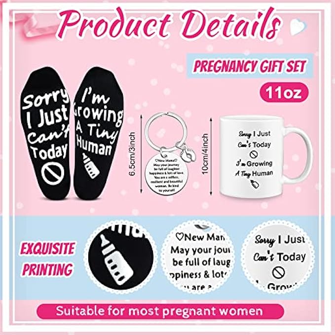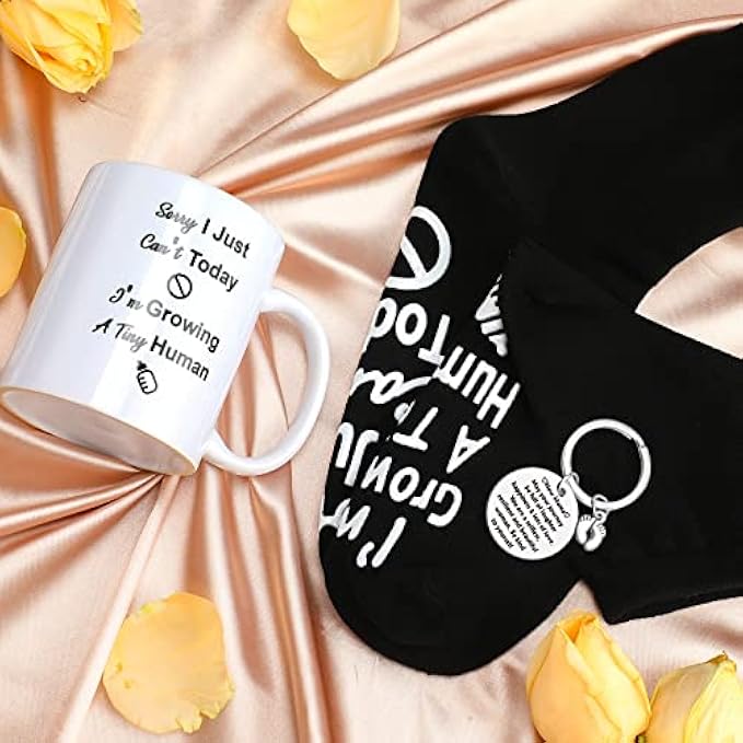 3 Pcs Pregnancy Gift New Mom Gifts with 11oz Mug, Growing a Tiny Human Mom Socks, New Mom Keychain Mom to Be Gift Pregnant Women Gift Set Pregnancy Announcement Gift
