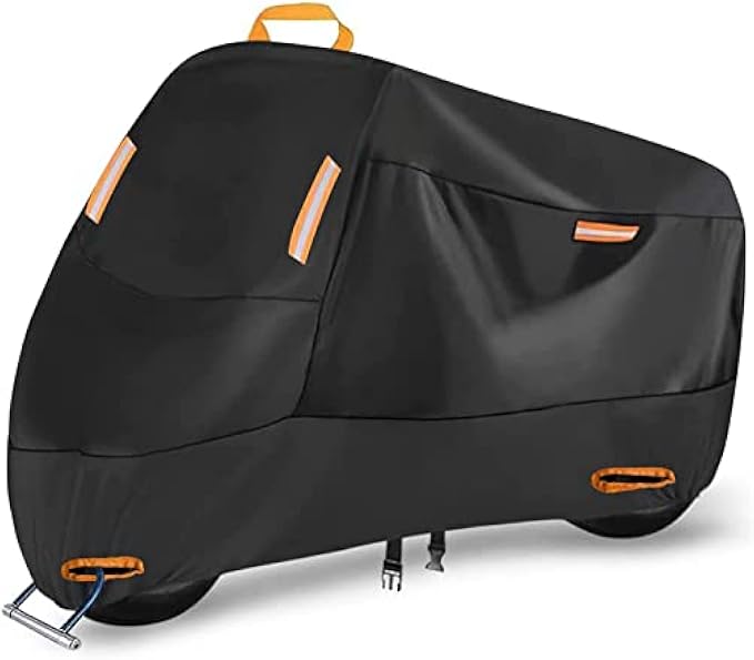 • Better Waterproof - Made of 300D premium quality nylon oxford material that thicker and more than 210D material on the market, It can withstand up to 2000 Pa water pressure, protect your motorcycle against rain, dust and inclement weather with top to bottom coverage.
