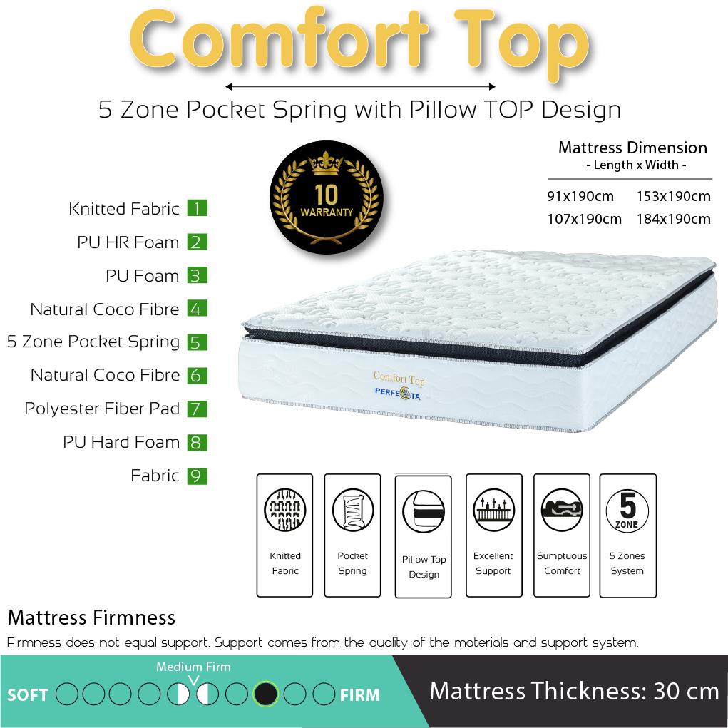 [Bulky] King Size - Perfecta Comfort Top 5 Zone Pocket Spring with Pillow TOP 12 Inch Mattress