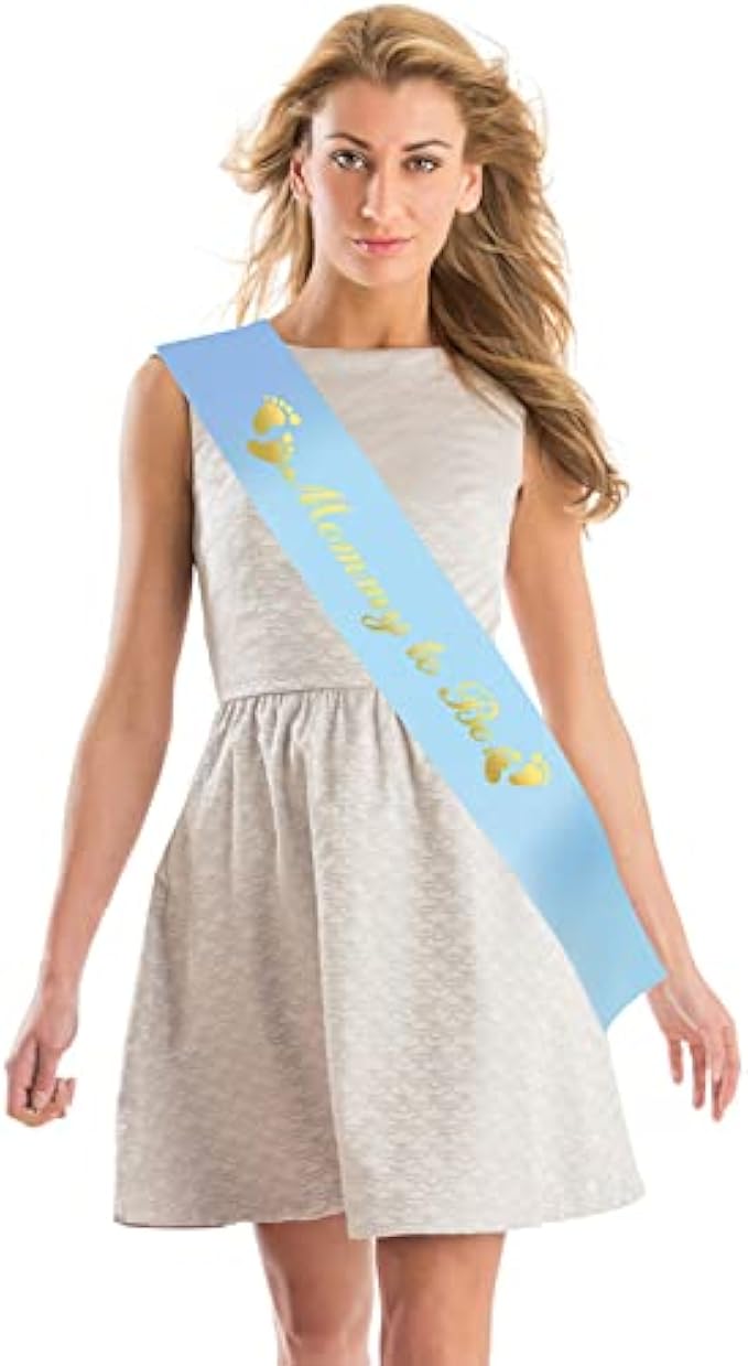 Beautifully Designed: 1Pcs 'Mommy To Be' Soft blue ribbon with rose gold foil text and rose gold trivets to represent the arrival of new life and hope; wrap your baby in the mom to be sash and it's in your heart or a reminder of your most special day.