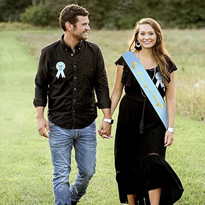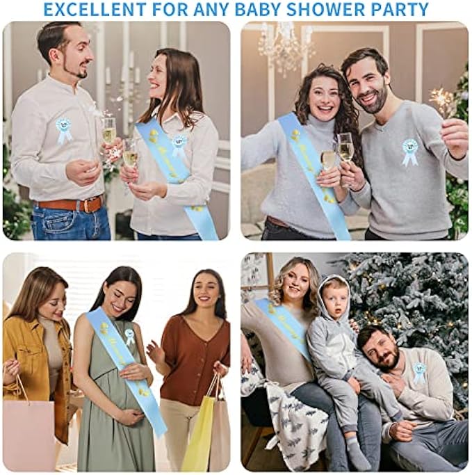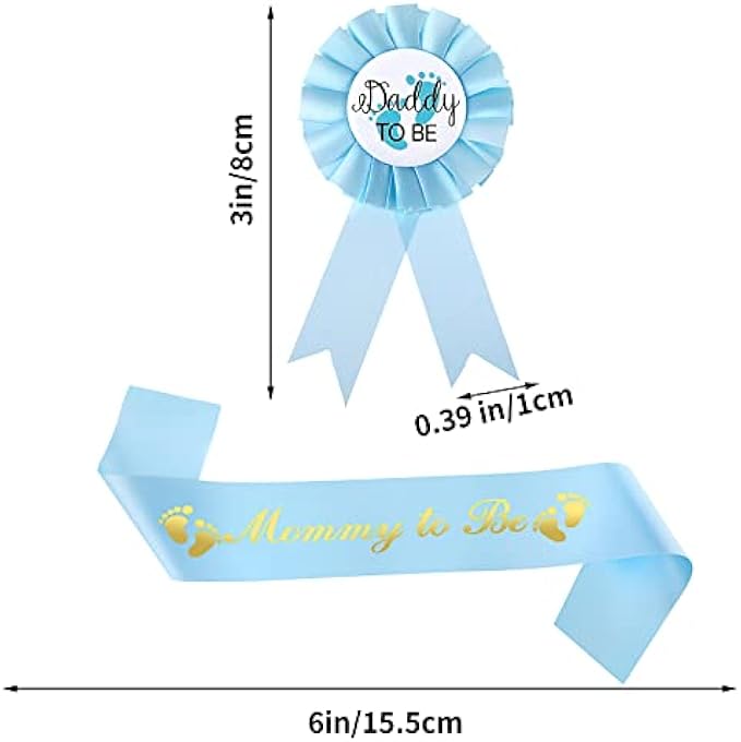 Maternity Sash and Corsage Pin Set: 1Pcs "Mom To Be" corsage and 1pcs "Daddy To Be" corsage. and 1Pcs maternity sash. This baby boy baby shower decorations is designed for baby showers, gender presentations or photo props.