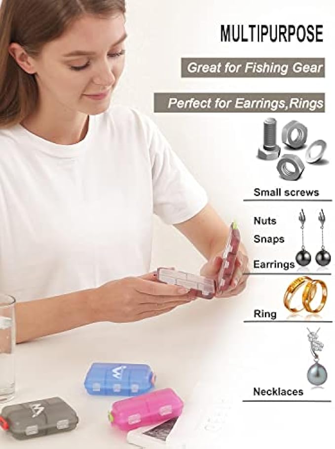 MULTIPURPOSE-- Pill container as shown in the picture. You can put Vitamin, Adornment, Clips, Hooks, Screws, and other small items.