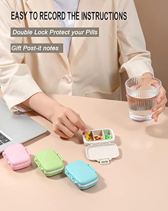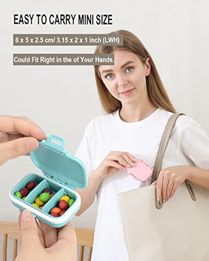 EASY TO CARRY -- Cute size: each pill container is approx. 8 x 5 x 2.5 cm/ 3.15 x 2 x 1 inch (LWH),could fit right in the of your hands. Offers a slim and portable design to take up less space yet keep your meds neatly and discreetly more organized. Perfect to be put in your purse, pocket, suitcase, gym bag, or any other case. Each pill holder uses 3 removable compartment designs.
