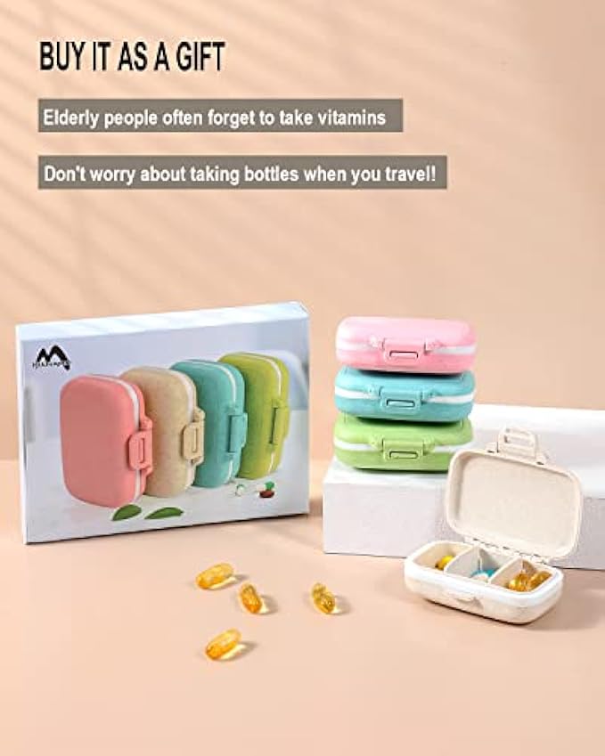 GOOD-QUALITY RAW MATERIALS-- Pill box made of the natural wheat stalk, solid and will not rupture when falling. Safe due to the food-grade PP raw materials free of formaldehyde and bisphenol A. Package included: 4PCS