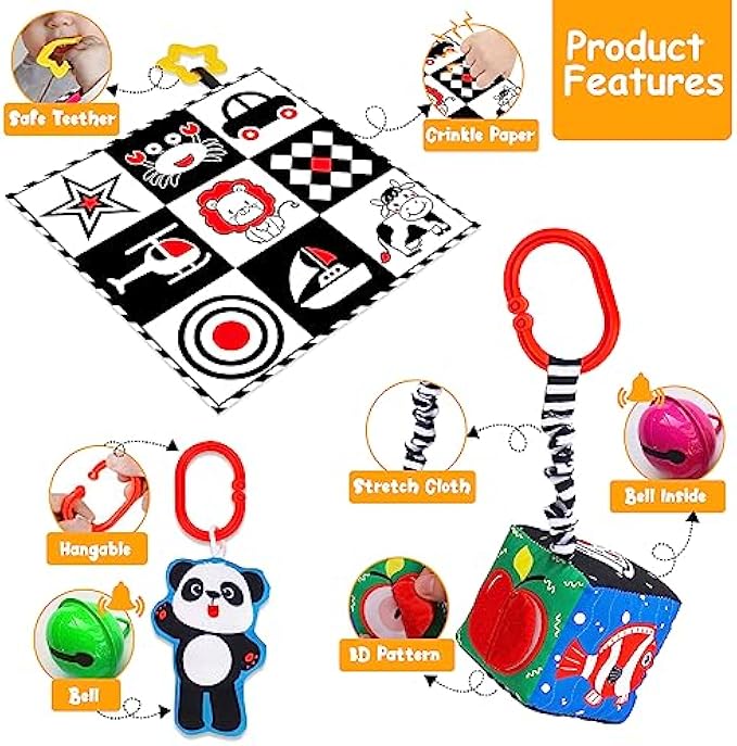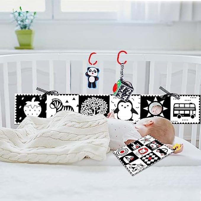 Personalized Baby Gifts: Our black and white baby toys 0-3 months are a good assistant to accompany the baby's growth, and also brilliant baby shower gifts. perfect carseat toys for infants 0-6 months. Great newborn toys 0-3 months brain development. 5 month old baby must haves. Very suitable as baby mirror tummy time toys.