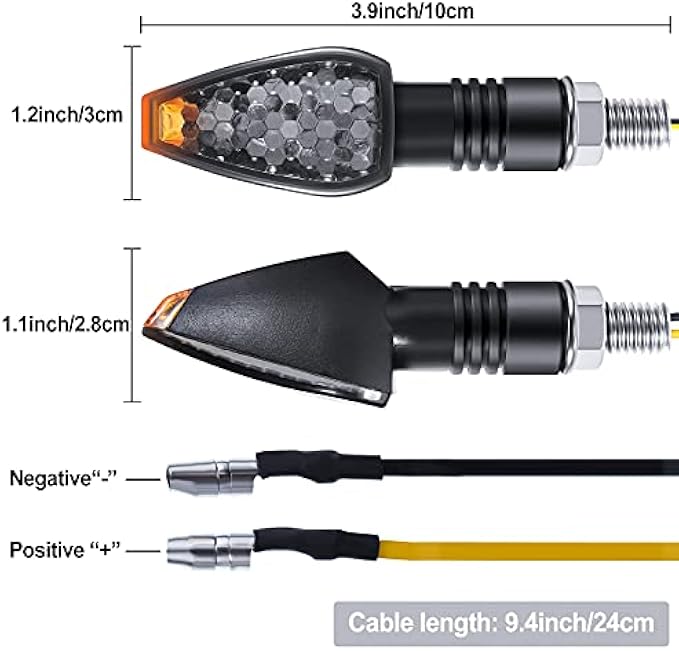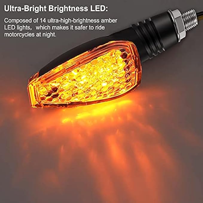 Ultra-bright brightness: mini stalk arrow light motorcycle turn signals lights is very small, with beautiful LED lights; It is composed of 14 ultra-high-brightness amber LED lights, which makes it safer to ride motorcycles at night