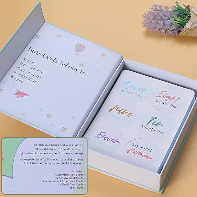 • A complete set of 49 unisex cards and 18 stickers to celebrate and record your child's first years.