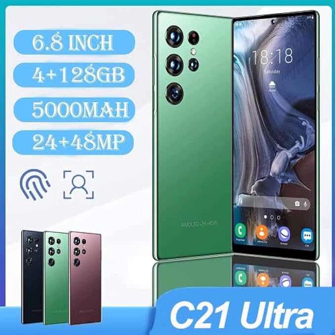 4G Unlocked Cell Phones,4G+128GB Dual Sim Smartphone, C21 Unlocked Mobile Phone with 6.8inch Waterdrop Screen, Android Phone 24+48 MP | 5000mAh | Fingerprint Lock & Face ID | US Version (green)