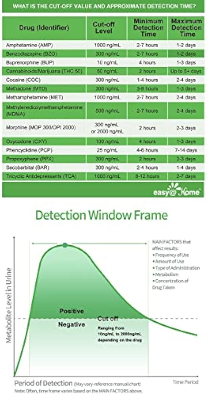 ★ ACCURATE: Most comprehensive and trusted 5 Panel Screening urine dip drug test. More than 99% accurate in detecting specific drugs according to the designated cut-off levels ; Tests for 5 popular Drugs: Marijuana (THC), Opiate (OPI 2000), Cocaine (COC), Amphetamine (AMP), Benzodiazepines (BZO). Cutoff level: THC - 50 ng/mL;COC - 300 ng/mL; OPI 2000 - 2000 ng/mL;BZO - 300 ng/mL; AMP - 1000 ng/mL