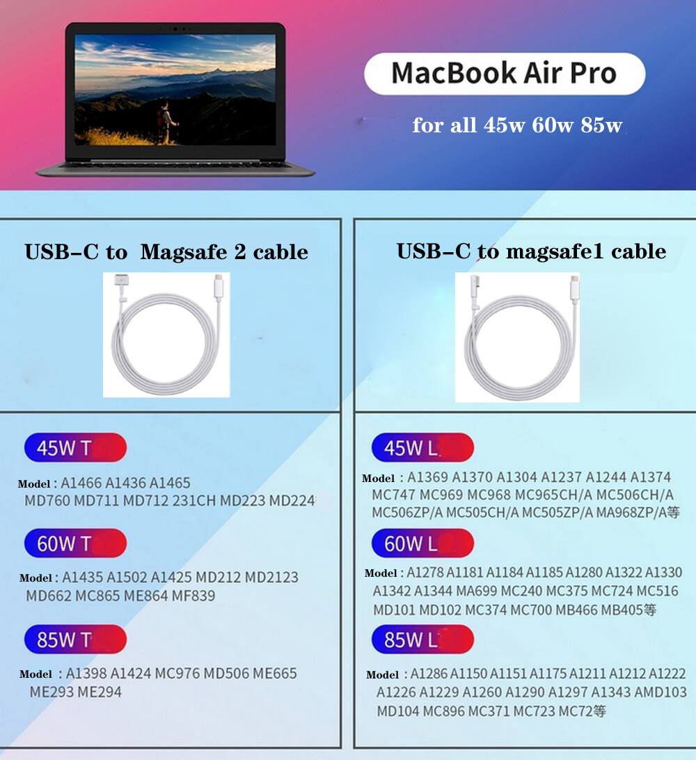 USB-C / Type C to L T Magsafe Cable 60/45W 16.5V/3.65A Output