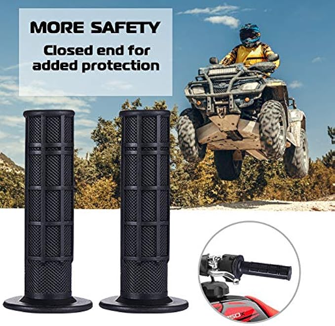 ?HIGH QUALITY:Made of high quality soft TPR rubber material,soft and durable in using.All of the ATV grips feature a smaller inner flange to allow for clearance of the thumb throttle and closed ends