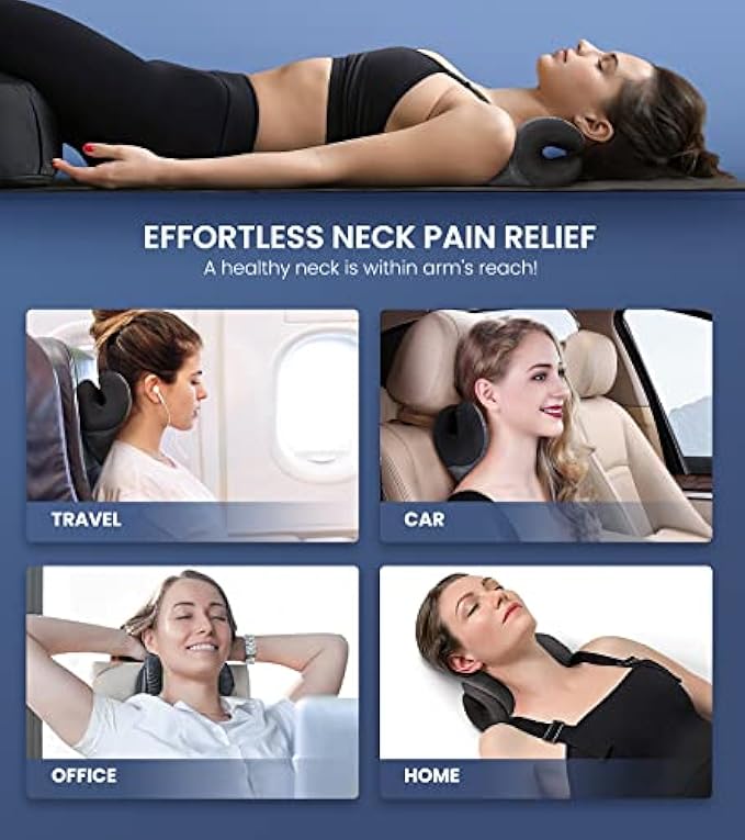 2 TRACTION LEVELS & 12 MASSAGE NODES! The vertical, horizontal support and curves stretch allow discs to open and correct the alignment of cervical spine, improving mobility, dowager's hump and forward head posture with consistent use. Rotating the neck posture corrector to customize the traction level - strong or gentle based on your neck stiffness. Non-vibrating acupuncture nodes of neck pillows for pain relief sleeping apply pressure to targeted pain, maximizing relaxation for stiff muscles