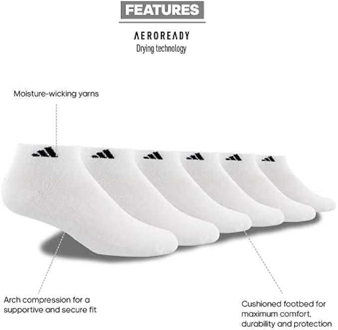 adidas Men's Athletic Cushioned Low Cut Socks (6-Pair)