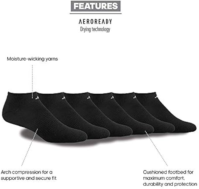 adidas Men's Athletic Cushioned No Show Socks with Arch Compression for a Secure Fit (6-Pair)