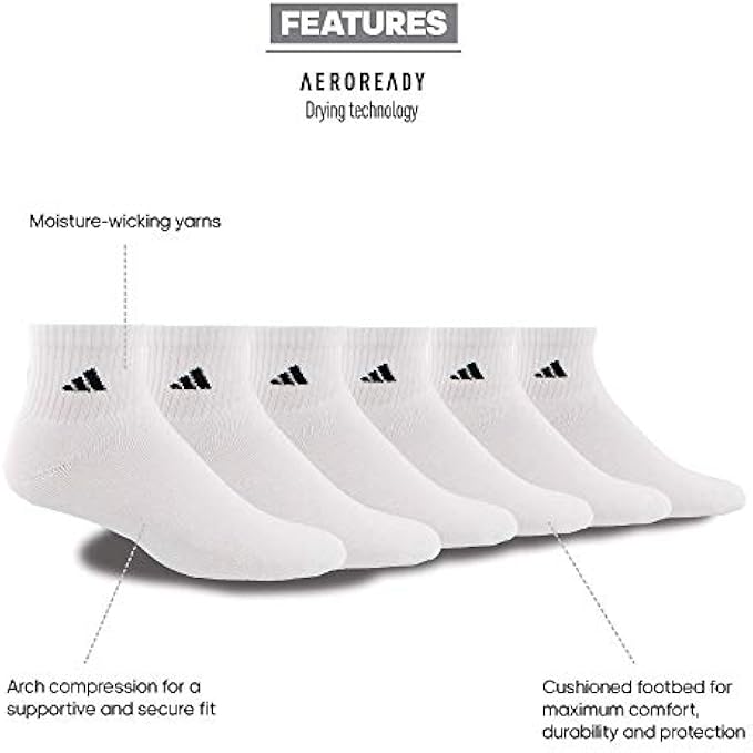 adidas Men's Athletic Cushioned Quarter Socks (with Arch Compression for a Secure Fit (6-Pair)