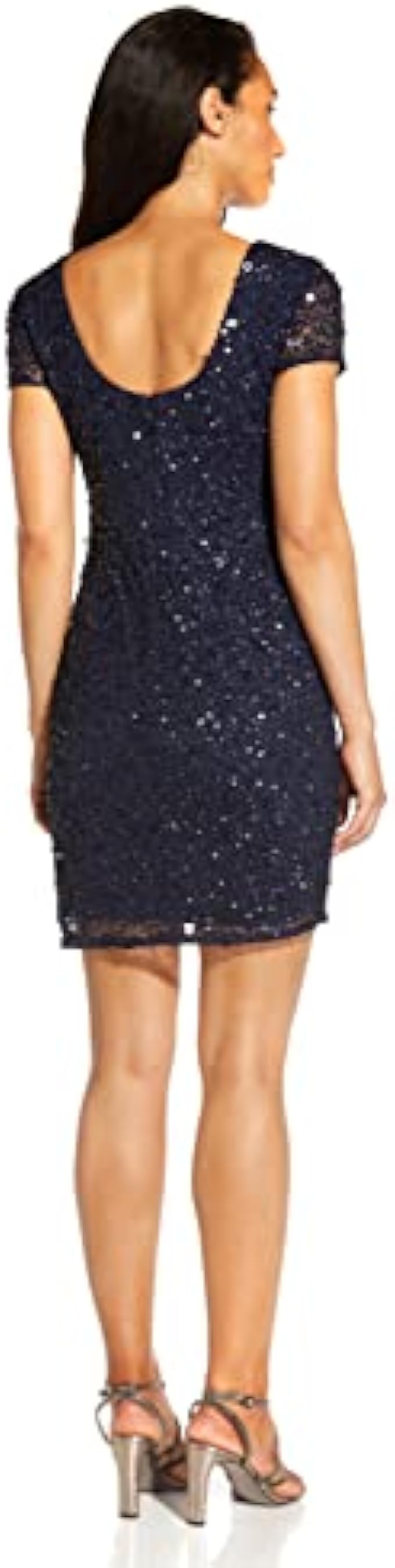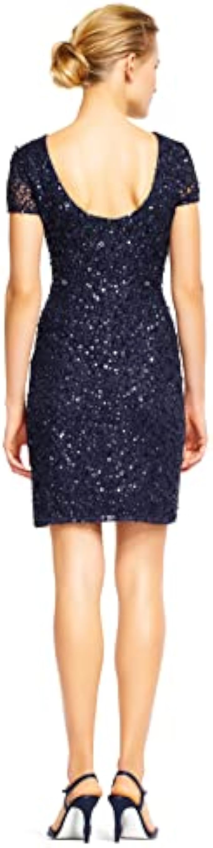 Adrianna Papell Women's Cap Sleeve Fully Beaded Cocktail Dress with Scoop Back