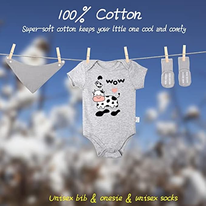 【Suitable for baby boys or baby girls】the neutral colors of our baby socks, onesies, hats and bibs make choosing newborn gifts easy! They are made of 100% nature material, that are very soft. The unique design bwill put a smile on everyones face. Ideal gifts following pregnancy announcement photo shoots!