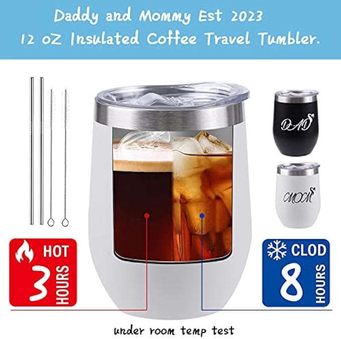 Aemoo im New Parents Pregnancy Gift, Mommy and Daddy Est 2023 Stainless Steel Wine Tumbler Set with Onesie Baby Socks - Top New Parents Gifts Idea for Gender Reveal