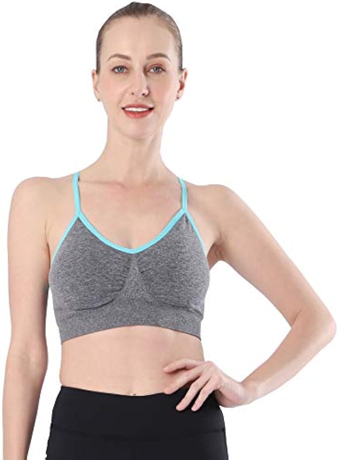 AKAMC 3 Pack Women's Medium Support Cross Back Wirefree Removable Cups Yoga Sport Bra