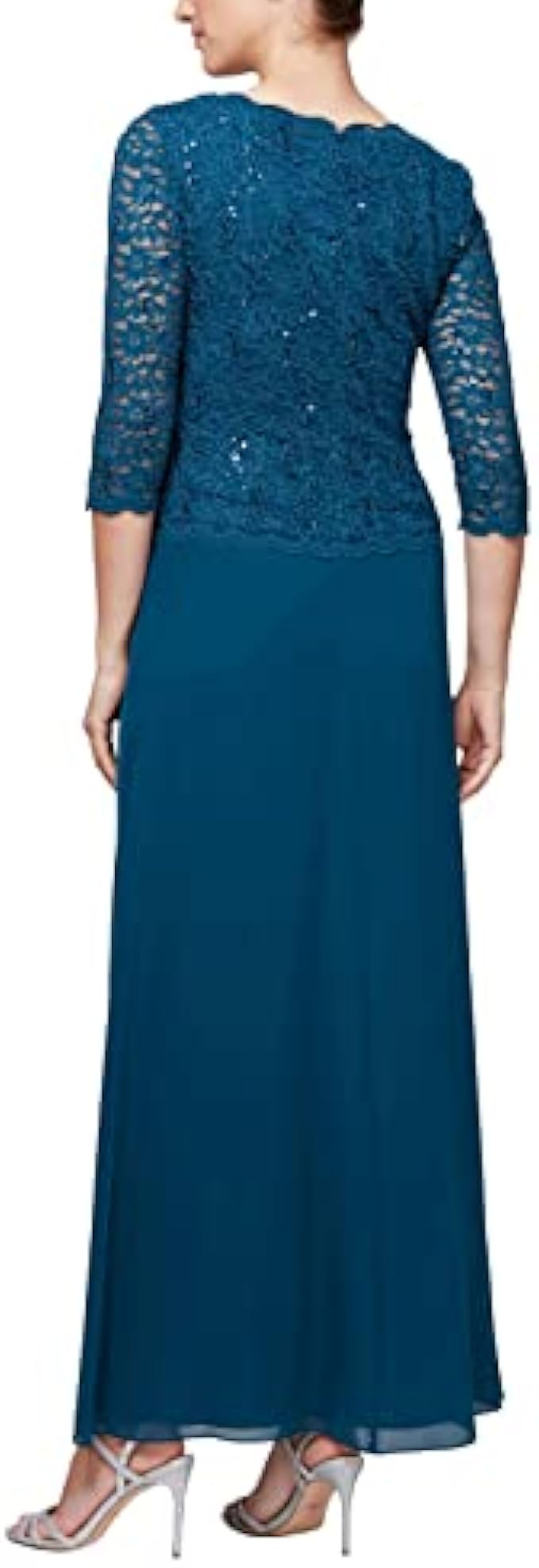 Alex Evenings Women's 3/4 Sleeve Stretch Lace Bodice Mock One Piece Gown